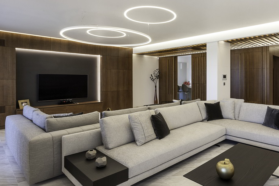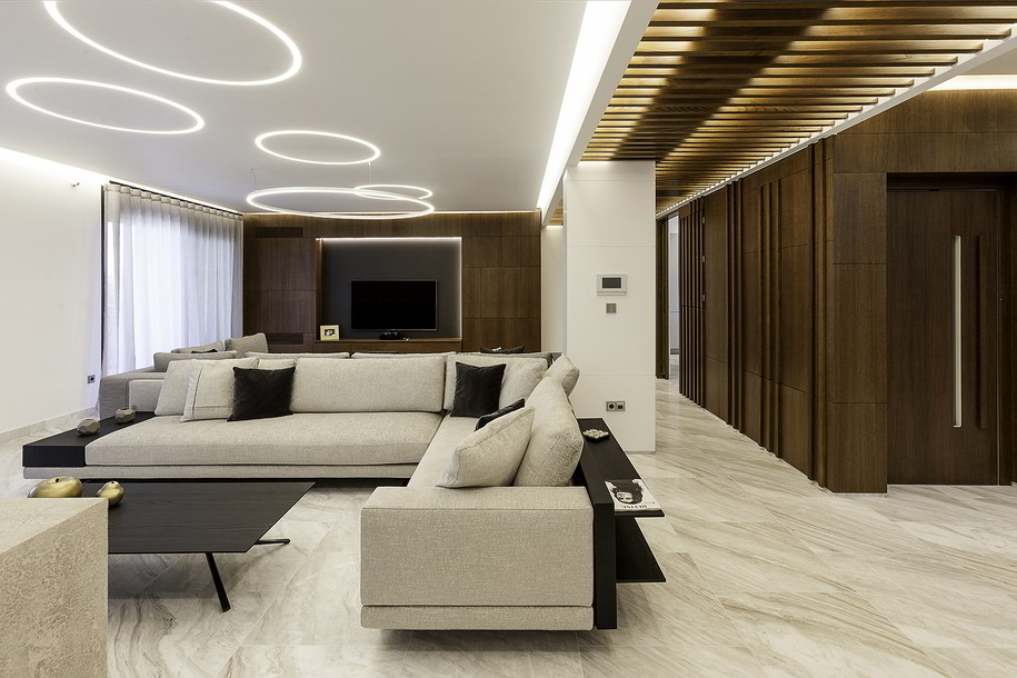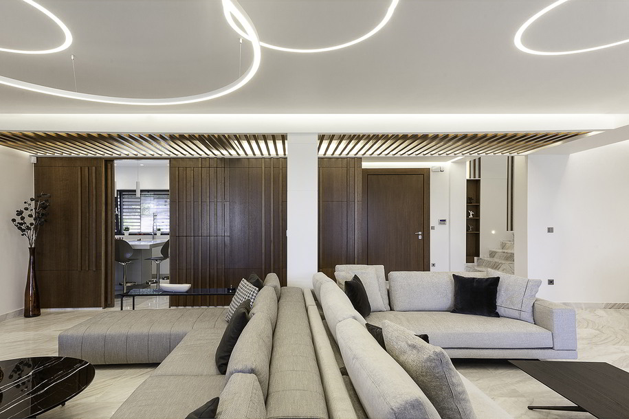 Τέλος, ιδιαίτερη προσοχή δόθηκε στο φωτισμό και την επιλογή της επίπλωσης, ώστε η τελική εικόνα του χώρου να αντικατοπτρίζει το σύγχρονο χαρακτήρα των αρχιτεκτονικών επιλογών, και να δίνει αίσθηση λιτής πολυτέλειας και άνεσης.