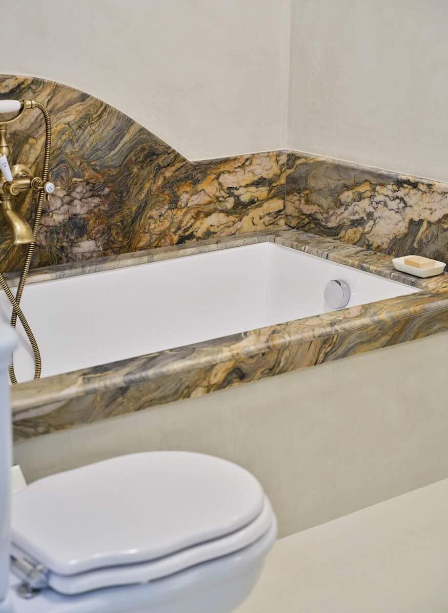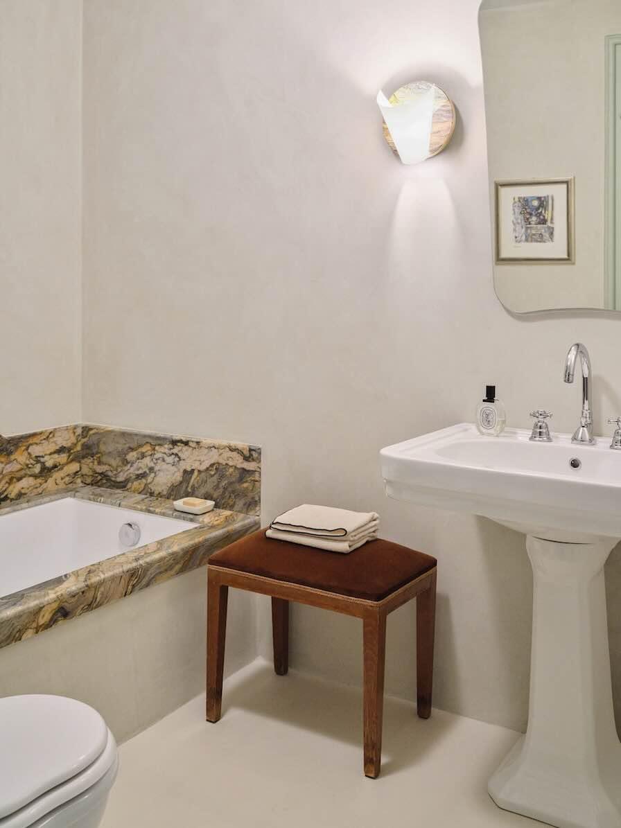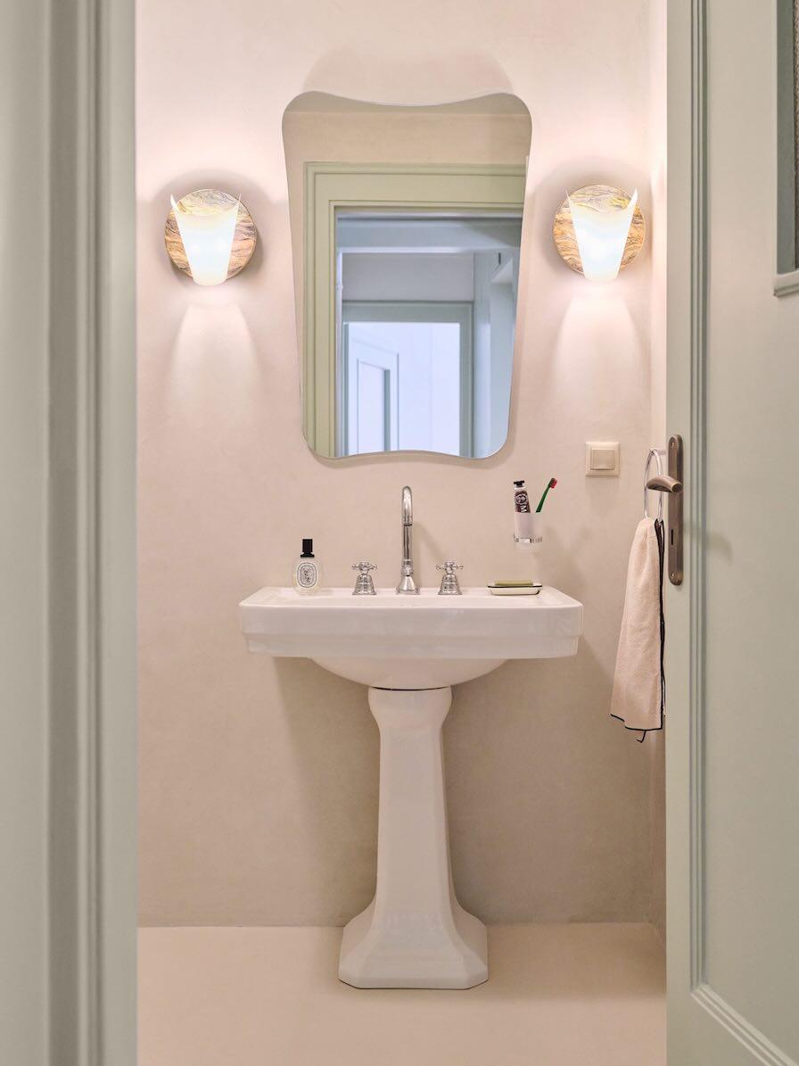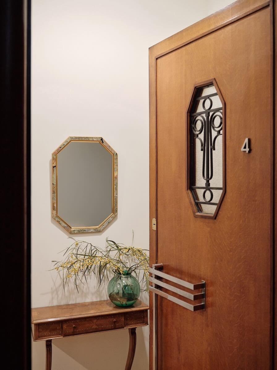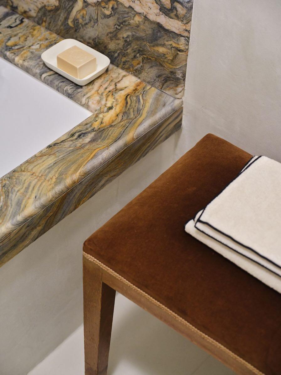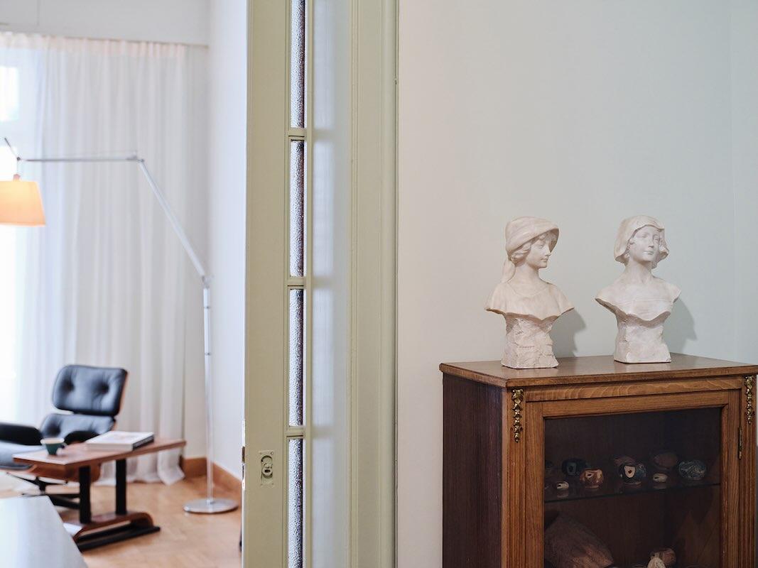 Το διαμέρισμα, με τα μωσαϊκά, το δρύινο πάτωμα, τα μάρμαρα και τις γύψινες λεπτομέρειες, δεν αναδιαμορφώθηκε ριζικά· αναδείχθηκε. Τα ξύλινα κουφώματα συντηρήθηκαν και εκσυγχρονίστηκαν διακριτικά, ενώ οι νέες παρεμβάσεις – από τη δημιουργία master μπάνιου και επιπλέον αποθηκευτικών χώρων, μέχρι τον μετασχηματισμό του δωματίου υπηρεσίας – εντάχθηκαν ως ήσυχοι διάλογοι με το υπάρχον κέλυφος, με γνώμονα τη λειτουργικότητα στο σύγχρονο βίωμα του διαμερίσματος.