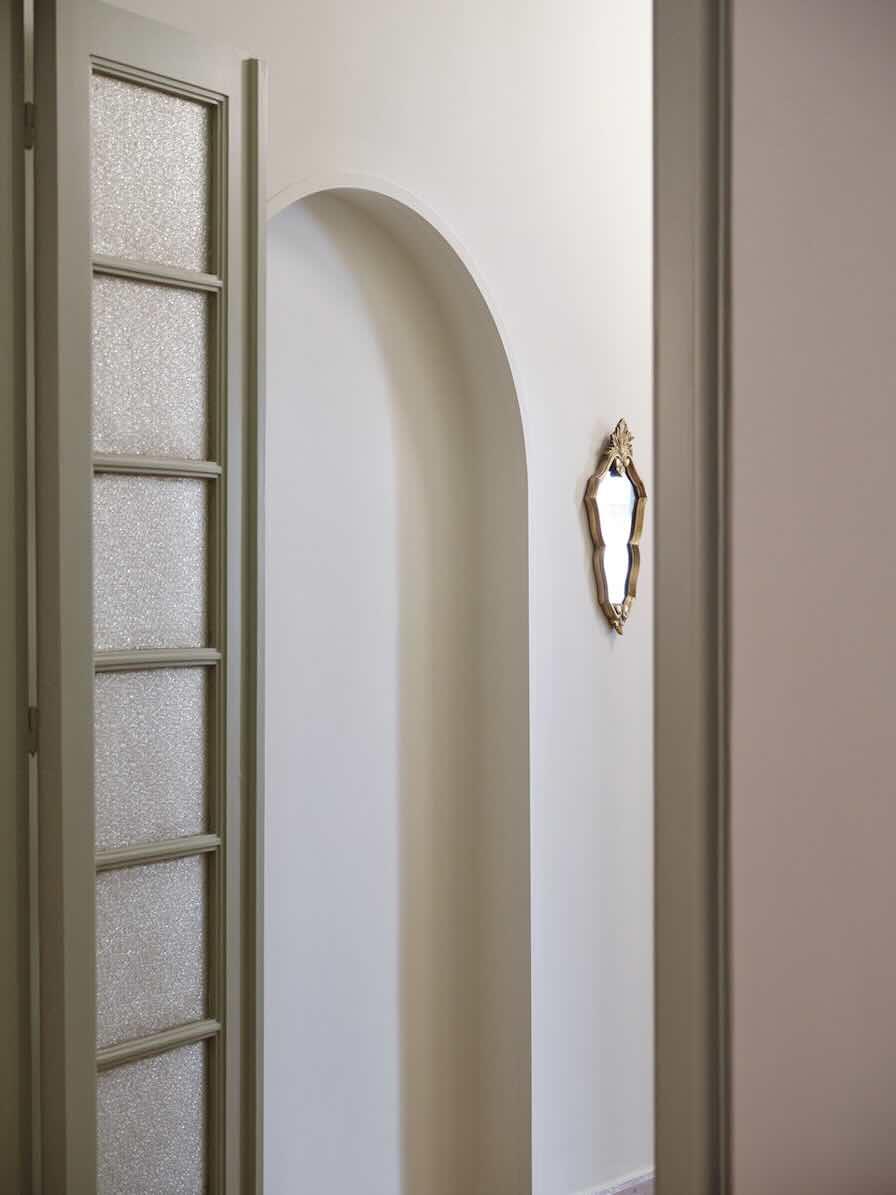 Η χρωματική παλέτα, με απαλούς τόνους και ιδιαίτερη χρήση του πράσινου, φωτίζει τα ανοίγματα και τονίζει το παιχνίδι του φυσικού φωτός.