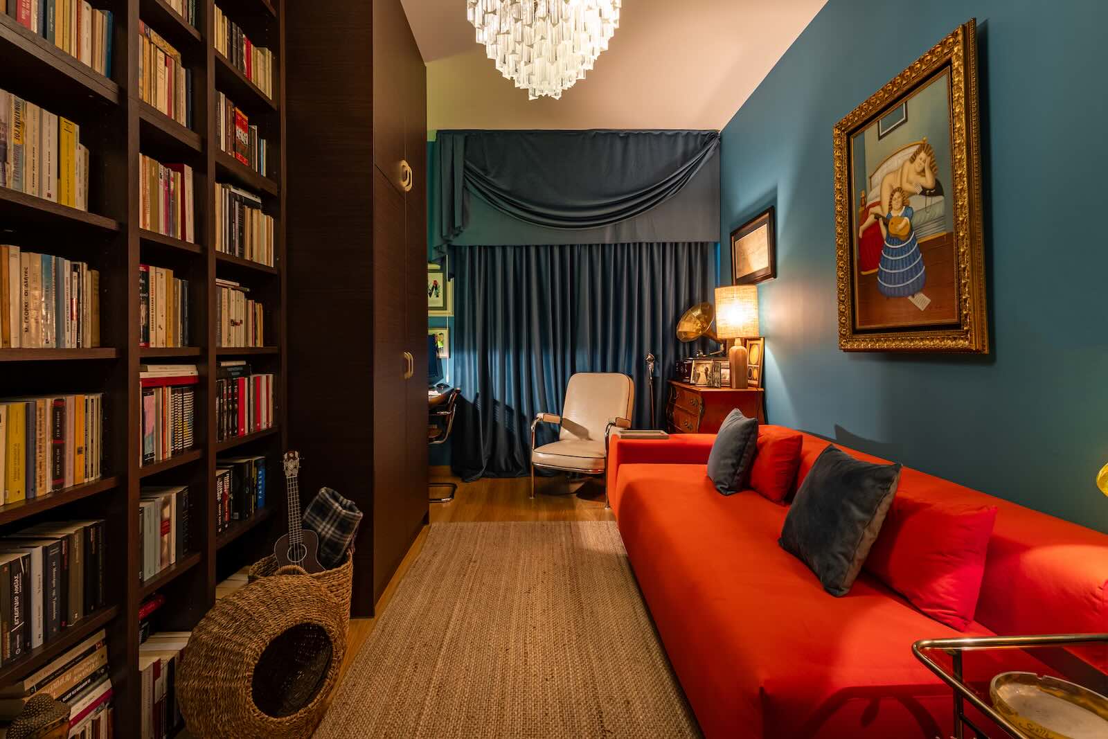 Στον κάτω όροφο, η ατμόσφαιρα αλλάζει: εδώ κυριαρχεί η ηρεμία και η ιδιωτικότητα. Η κύρια κρεβατοκάμαρα με boudoir, η μικρή τραπεζαρία με kitchenette, το γυμναστήριο και το walk-in closet συνθέτουν έναν προσωπικό κόσμο, σχεδιασμένο για ισορροπία ανάμεσα στη χαλάρωση και την καθημερινή λειτουργικότητα.
