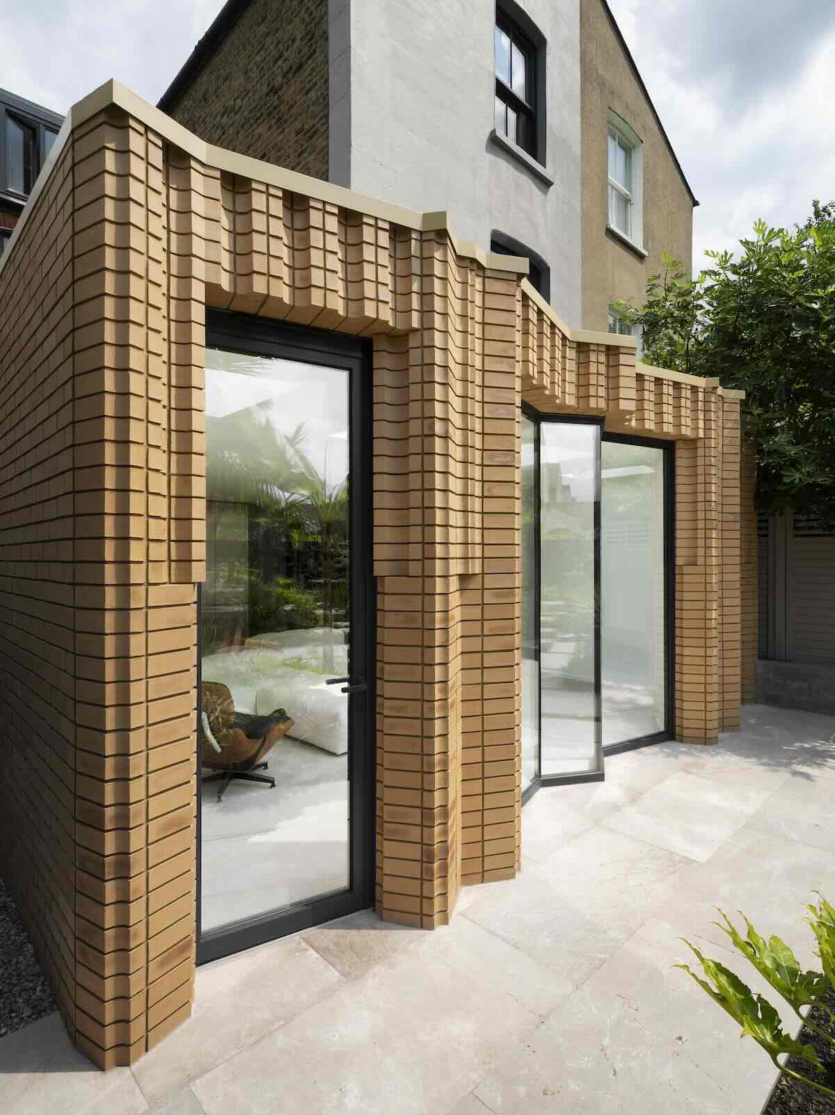 Το αρχιτεκτονικό δίδυμο Κατερίνα Διονυσοπούλου και Billy Mavropoulos προσεγγίζει την ανακαίνιση με βαθύ σεβασμό προς το παρελθόν. Ο νέος πίσω όγκος του σπιτιού «δανείζεται» μοτίβα από σπάνια ξυλόγλυπτα της βικτωριανής εποχής, τα οποία επανερμηνεύονται μέσω ειδικά κατασκευασμένων τούβλων. Το αποτέλεσμα είναι μια εντυπωσιακή, τρισδιάστατη επιφάνεια που μοιάζει να κινείται καθώς αλλάζει η γωνία θέασης. Μια αρχιτεκτονική πτυχή που χαρακτηρίζεται ήδη ως signature του στούντιο.