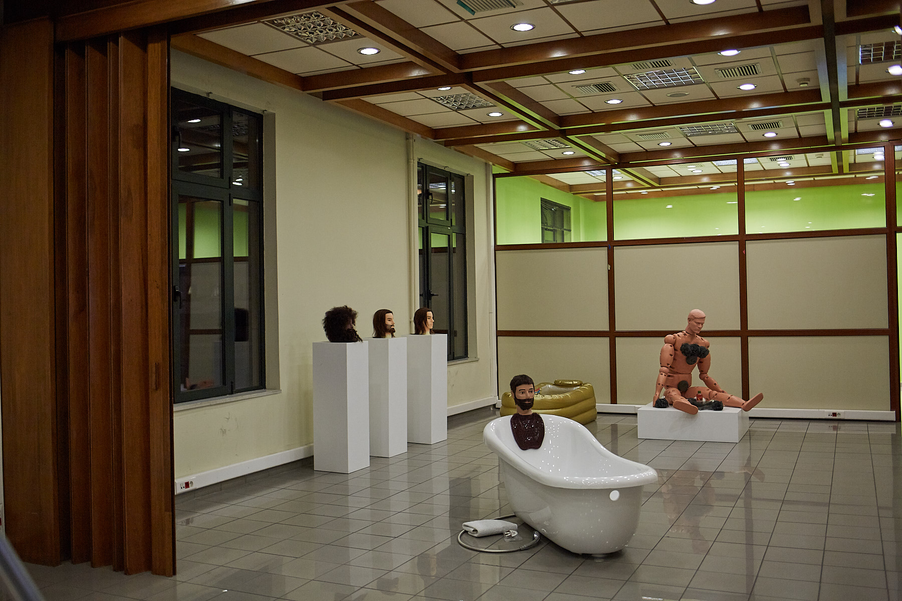 Με εξίσου ανατρεπτικά και άκρως ερεθιστικά για το μυαλό έργα, η έκθεση συνεχίζεται στους υπόλοιπους ορόφους με θέματα όπως τα ψηφιακά μας άβαταρ αλλά και μια ειρωνική(;) προσέγγιση στην κουλτούρα του Wellbeing. Και συνεχίζεται και σε άλλα τρία κτίρια! Μετά το ΤΤΤ σειρά έχει το ξενοδοχείο Esperia Palace. Το Esperia ήταν ένα από τα πιο γνωστά ξενοδοχεία 4* από το 1963 μέχρι την ξαφνική διακοπή της λειτουργίας του το 2010 και υπήρξε στέκι πολιτικών. Σε αυτό το κλίμα της πολιτικής αλλά και της ισορροπίας μεταξύ φθοράς και λάμψης «παίζουν» τα εκθέματα. Ένας πολυτελής μπουφές ξενοδοχείου με σάπια φαγητά, ένα άδειο καφέ και η δυνατότητα να ιδρύσεις το δικό σου φασιστικό κόμμα.
