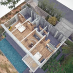 Ανάλογα με τις ανάγκες των ατόμων και των οικογενειών, ο πρώτος όροφος μπορεί να διαμορφωθεί πλήρως με συρόμενα ξύλινα τοιχώματα. Αυτό το παιχνιδιάρικο σύστημα, οι αλλαγές δηλαδή που μπορούν να γίνουν, δημιουργούν διαφορετικούς χώρους ανάλογα με τις ανάγκες των κατοίκων.