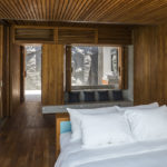 Στο σπίτι κυριαρχεί η πέτρα, το ξύλο και το τζάμι. Μάλιστα, η τζαμαρία που τυλίγει την οικία προσφέρει ανεμπόδιστη πανοραμική θέα στο τοπίο. Από την άλλη το ξύλο δίνει μια πολυτελή αίσθηση στην οικία, ενώ η πέτρα μια πιο γήινη όψη.