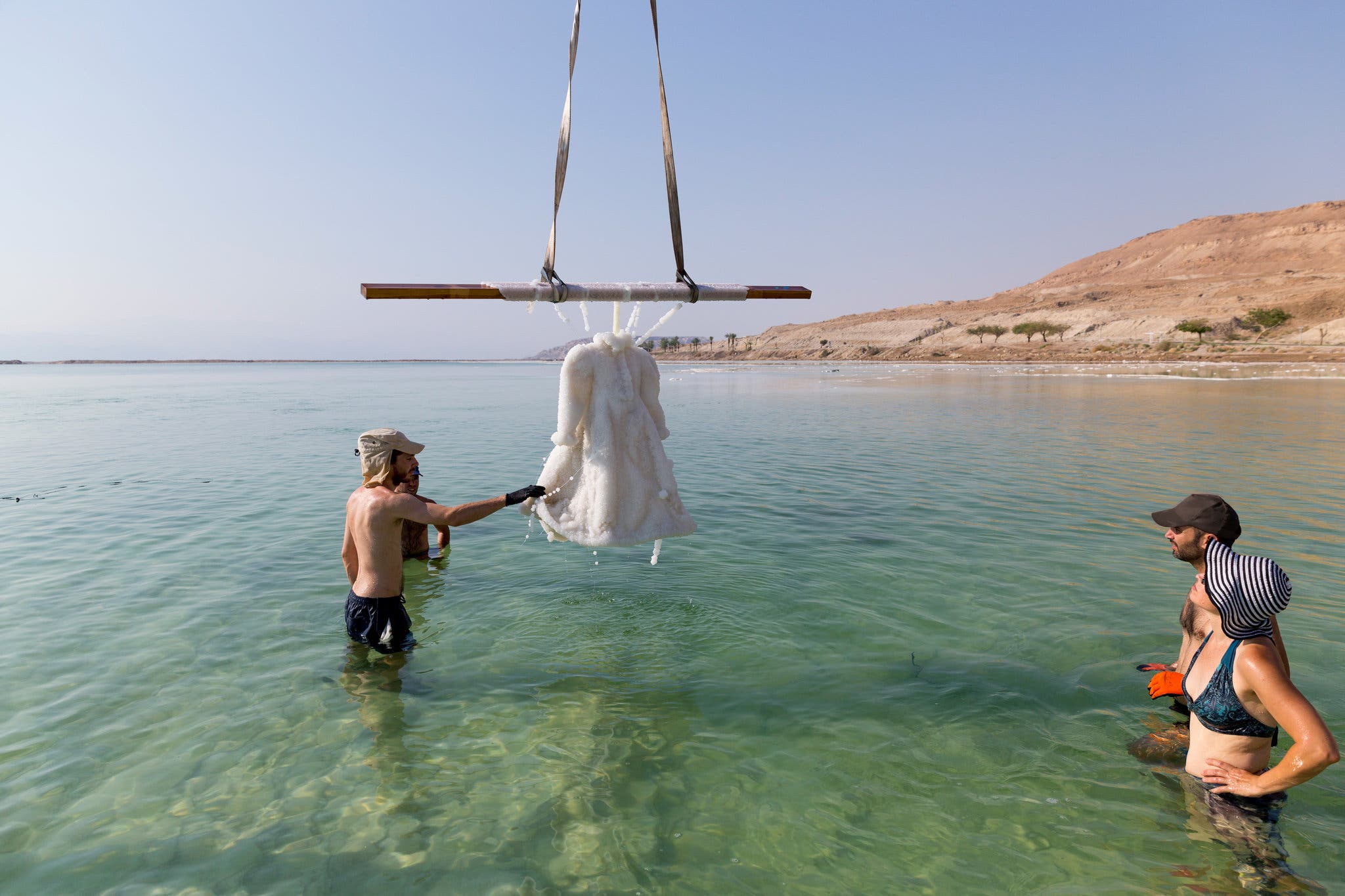 Για δύο μήνες το 2014, φιλοξένησε επίσης ένα φόρεμα, το οποίο όταν βυθίστηκε στα ύδατά της λίμνης ήταν μαύρο και όταν βγήκε -μετατράπηκε σχεδόν μαγικά- σε ολόλευκο. Το κρυστάλλινο αλάτι κάλυψε το φόρεμα και μας έδωσε την αίσθηση ότι πρόκειται για νυφικό.