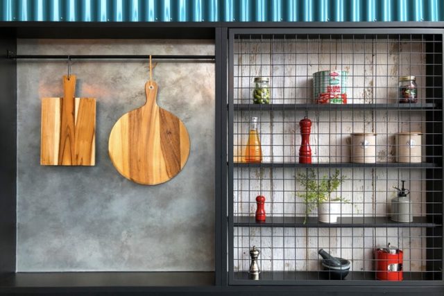 Μπορεί το αλάτι και το πιπέρι να βρίσκονται σε κοινή θέα, ωστόσο, τα υπόλοιπα μπαχαρικά έχουν θέση στο ντουλάπι. Εάν είστε, όμως, φαν συγκεκριμένων μπαχαρικών, τα οποία και χρησιμοποιείται αρκετά, μπορείτε να τα τοποθετήσετε σε ραφάκια που στέκονται στον τοίχο.