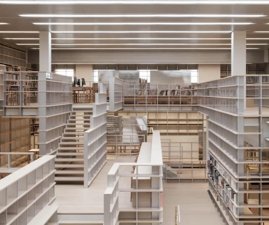 Ο ιαπωνικής καταγωγής αρχιτέκτονας Kazunari Sakamoto κλήθηκε να σχεδιάσει έναν χώρο που να αντικατοπτρίζει την ενέργεια της Σαγκάης και τη βιομηχανική κληρονομιά του PSA. Το αποτέλεσμα είναι μια “λαβυρινθώδης κοιλάδα βιβλίων” με ράφια και ράμπες διαφορετικών επιπέδων που παραπέμπουν στις καμπύλες του Huangpu, ενσωματώνοντας τόσο τη ροή του νερού όσο και την ένταση του παλιού βιομηχανικού τοπίου.