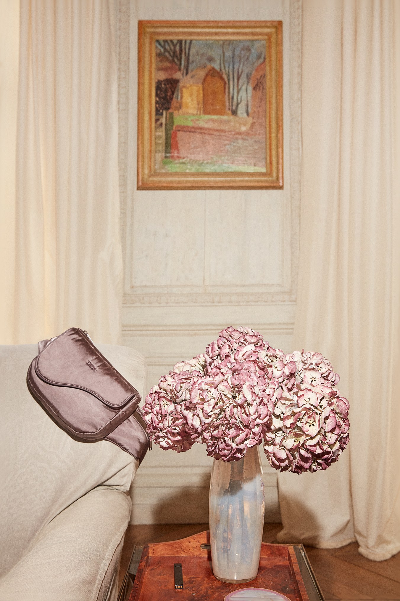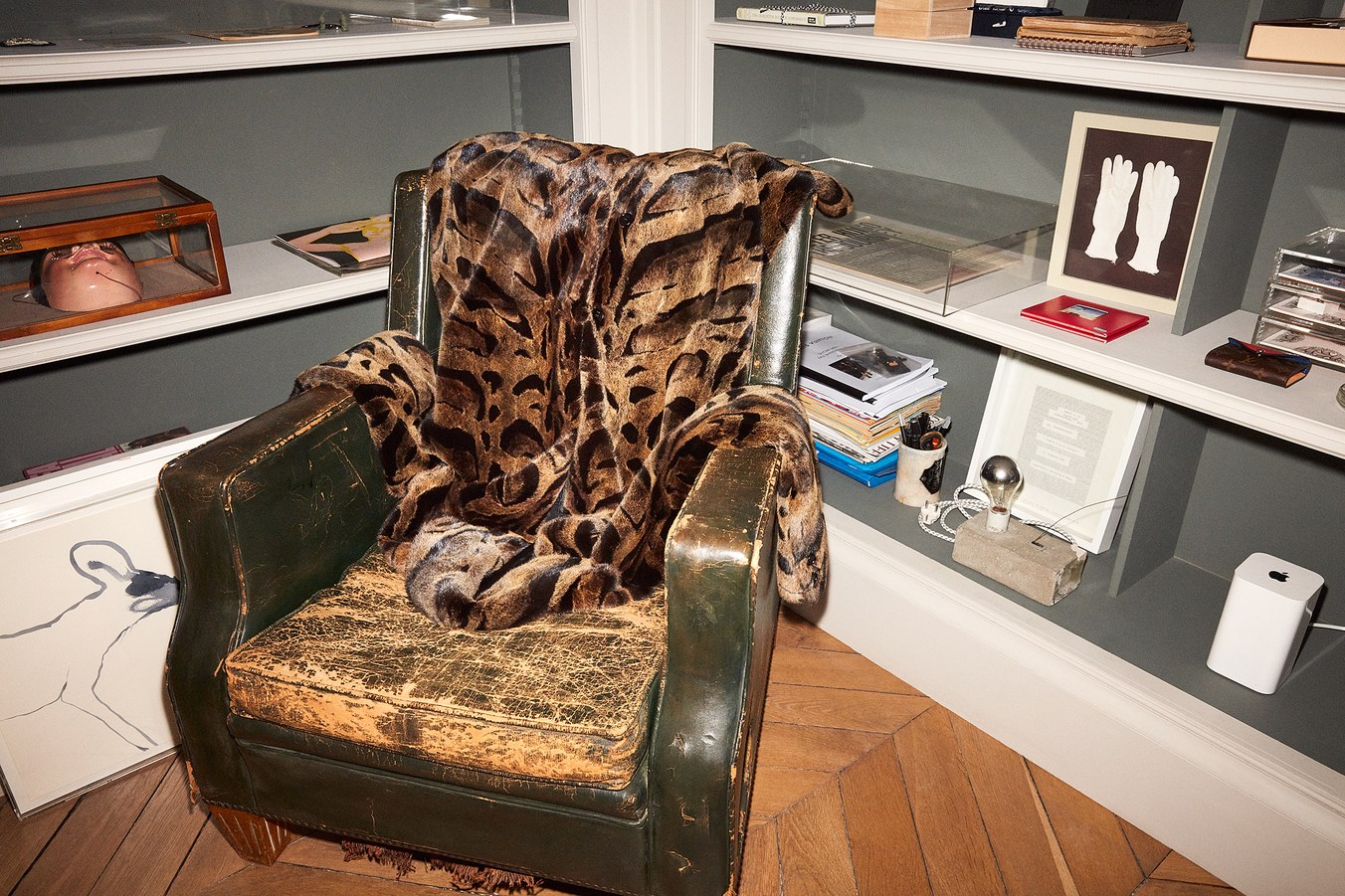 Την μεγάλη βιβλιοθήκη του, έπιπλο του 17ο αιώνα, κοσμούν αυτόγραφα της Naomi Campbell και Kate Moss, γιαπωνέζικα παιχνίδια και illustrations από τον καλτ καλλιτέχνη Hajime Sorayama, που πρόσφατα συνεργάστηκε μαζί του στην sci-fi παρουσίαση της pre-fall κολεξιόν. Οι τοίχοι του σαλονιού είναι ντυμένοι σε απαλή γκρι απόχρωση, ενώ στο κέντρο βρίσκεται ένα πιάνο αντίκα. Τον χώρο κοσμούν αφρικανικές μάσκες και πίνακες ζωγραφικής, ενώ δεν λείπουν πινελιές γαλλικής φινέτσας, όπως τα λουλούδια.
