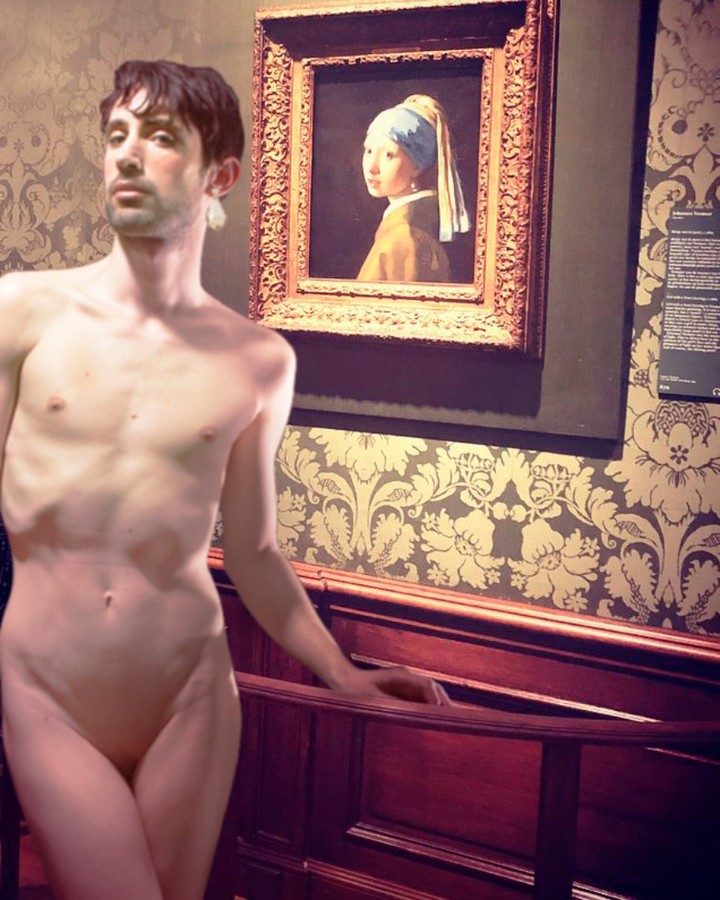 Πρόκειται για τον Adrián Pino, καλλιτέχνη που εκτελεί performances και που είναι γνωστός για τα «κόλπα» που πραγματοποιεί δημόσια, σε διάφορες γκαλερί και μουσεία σε ολόκληρη την Ευρώπη. Στο λογαριασμό του στο Instagram αναφέρεται στον εαυτό του ως «Ο σύντροφος της Αφροδίτης» (The boyfriend of Venus) και απεικονίζεται να ποζάρει γυμνός μπροστά από το Δαυίδ του Michelangelo, το Κορίτσι με το Μαργαριταρένιο Σκουλαρίκι του Johannes Vermeer και πολλά ακόμη διάσημα έργα τέχνης.