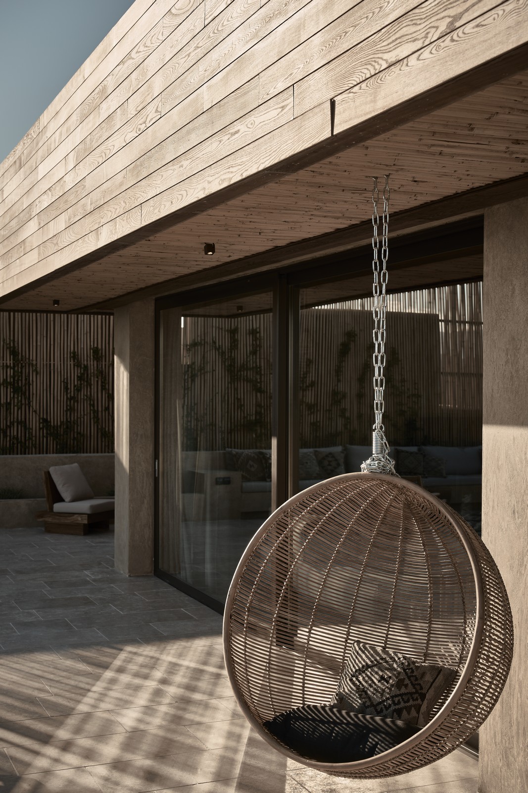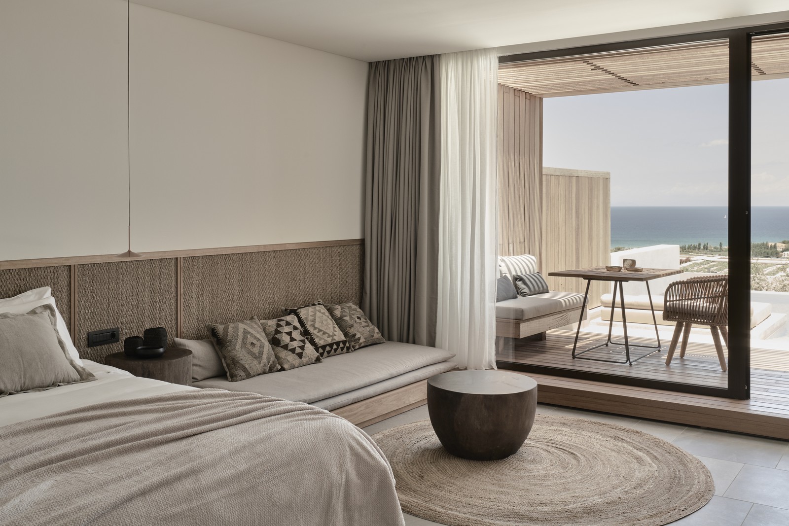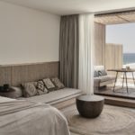 Το αρχιτεκτονικό γραφείο σεβάστηκε απόλυτα το φυσικό περιβάλλον με τις αιωνόβιες ελιές να αποτελούν αναπόσπαστο κομμάτι του ξενοδοχείου, για το οποίο χρησιμοποίησαν φυσικά υλικά, όπως ρουστίκ ξύλο βελανιδιάς, μπαμπού και ροτέν.