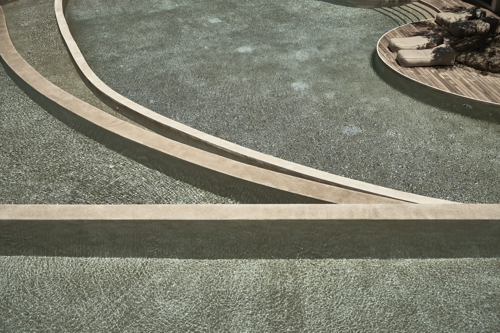 Πρόκειται για ένα σύγχρονο καταφύγιο, που σχεδιάστηκε από αρχιτεκτονικό γραφείο block722 με έδρα την Αθήνα και τη Στοκχόλμη. Βασικό στοιχείο του το νερό, το οποίο είναι πανταχού παρόν και προσφέρει αύρα γαλήνης και ηρεμίας. Μια χειροποίητη λίμνη επιφάνειας 4.000 τ.μ. περιβάλλει τις πολυτελείς σουίτες με τον σχεδιασμό να αγκαλιάζει τους χώρους, οι οποίο μοιάζουν να επιπλέουν.