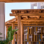 Η είσοδος του κεντρικού κτιρίου έχει πέργκολα ξυλείας. Από την άλλη, το μάρμαρο που χρησιμοποιήθηκε στην πισίνα τοποθετήθηκε γύρω από το κεντρικό κτίριο ως μέσο ενοποίησης και φυσικής συνέχειας των χώρων.