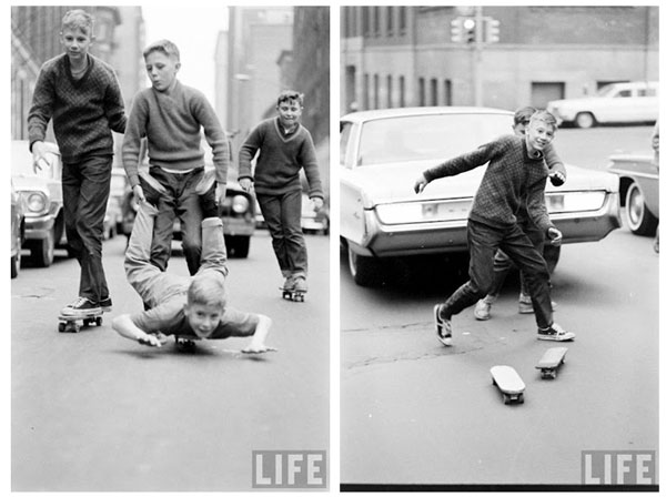 Δείτε μια συλλογή από φωτογραφίες του Bill Eppridge, που είχαν δημοσιευτεί το 1960 στο περιοδικό LIFE. Οι φωτογραφίες απεικονίζουν παιδιά και μεγάλους να κάνουν αγώνες skate και βόλτες στις γειτονιές της Nέας Υόρκης, στο Weslyan University και Central Park σε μια περίοδο που το skateboarding ήταν κοινωνικά αποδεκτό και ανοιχτό για όλους. Ο φωτογράφος Bill Eppridge που συνεργαζόταν κυρίως με τα περιοδικά LIFE και Sports Illustrated είχε καλύψει φωτογραφικά πολέμους, καμπάνιες εκλογών, Ολυμπιακούς αγώνες, την περίοδο που οι Βeatles εμφανίστηκαν για πρώτη φορά στην Αμερική καθώς και την πιο σοκαριστική στιγμή για την καριέρα του, τη δολοφονία του Ρόμπερτ Κένεντι στο Λος Άντζελες.