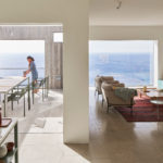 Το εσωτερικό θυμίζει αστικό σπίτι με σύγχρονη διακόσμηση και έντονα μινιμαλιστικά στοιχεία. Υπάρχουν μεγάλες μπαλκονόπορτες που επιτρέπουν τον φυσικό φωτισμό, τοίχοι από τσιμέντο και μπαλκόνια που εξέχουν απ΄τον λόφο, δίνοντας την αίσθηση πως το σπίτι προεκτείνεται προς την θάλασσα.
