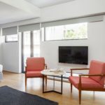Τα interiors του ρετιρέ του 6ουορόφου, του διαμερίσματος του 1ου και των γραφείων του ισογείου έχουν σχεδιαστεί από την ομάδα του Mab Architects σε συνεργασία με την Sonia Savurdic. Η διακόσμηση των διαμερισμάτων είναι μοντέρνα με το ξύλο και το μάρμαρο να κυριαρχούν, ενώ τα χρώματα κινούνται σε γήινους τόνους. Κάθε διαμέρισμα είναι άνετο, χαρίζοντας στους κατοίκους του μια ευχάριστη διαμονή στην «καρδιά» της Αθήνας. Αδιαμφισβήτητα, η θέα στον Παρθενώνα είναι συναρπαστική και ένα από τα στοιχεία που κάνουν τη διαμονή λίγο πιο μοναδική.