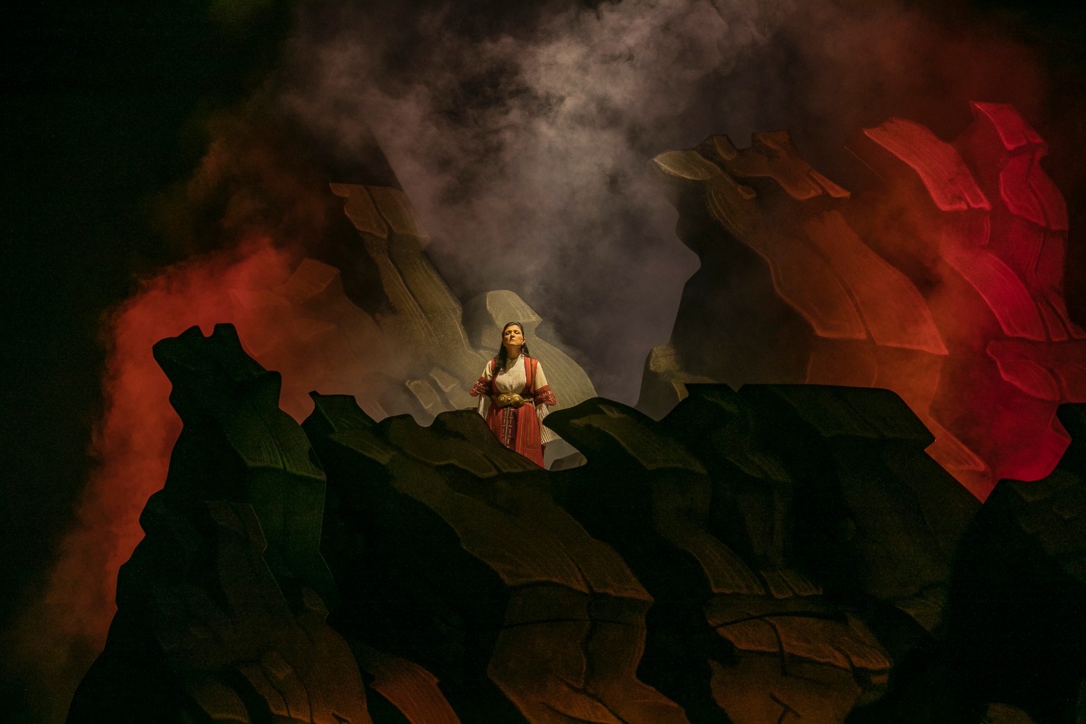 Το έργο διηύθυνε ο Γιώργος Ζιάβρας, σκηνοθέτησε ο Γιώργος Νανούρης, τα σκηνικά-κοστούμια υπέγραψε ο Άγγελος Μέντης και τους φωτισμούς ο Αλέκος Γιάνναρος. Τον ρόλο του τίτλου ερμηνεύει η Άρτεμις Μπόγρη και μαζί της οι Δημήτρης Πακσόγλου, Διαμάντη Κριτσωτάκη, Γιάννης Σελητσανιώτης και η Χορωδία της ΕΛΣ.