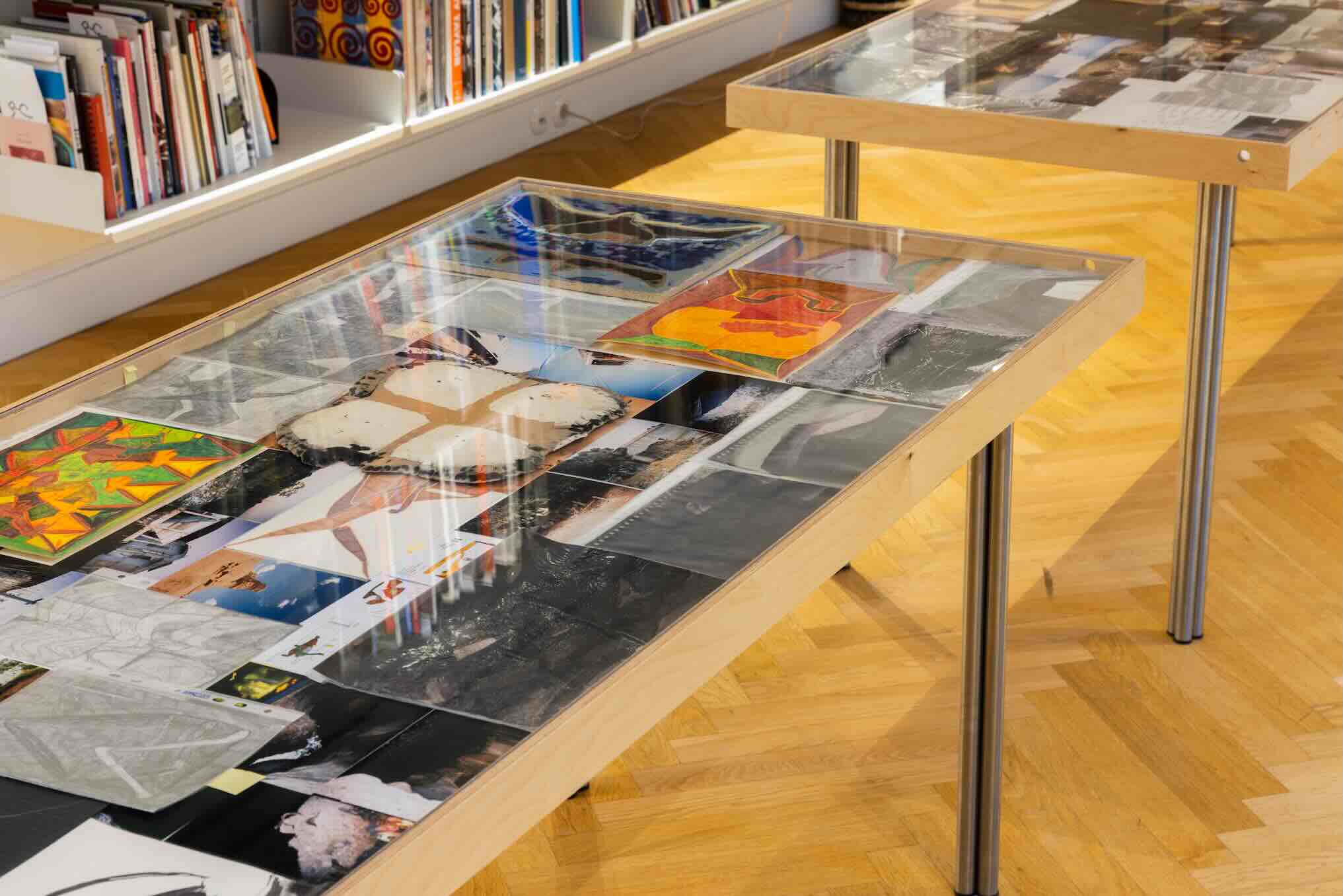 Σε αντίθεση με μια κλασική έκθεση, εδώ το βλέμμα κατευθύνεται σε υλικό που συνήθως μένει στο παρασκήνιο: βιβλία καλλιτεχνών, σχέδια, έντυπα, εφήμερα αντικείμενα και αρχειακά ίχνη που λειτουργούν σαν σημειώσεις μιας διαδρομής. Η παρουσίαση προσφέρει μια πιο ευρεία εικόνα της πρακτικής του καλλιτέχνη και του τρόπου με τον οποίο το έργο του εξελίσσεται στον χρόνο, μέσα από δοκιμές, μετατοπίσεις και επαναλήψεις.