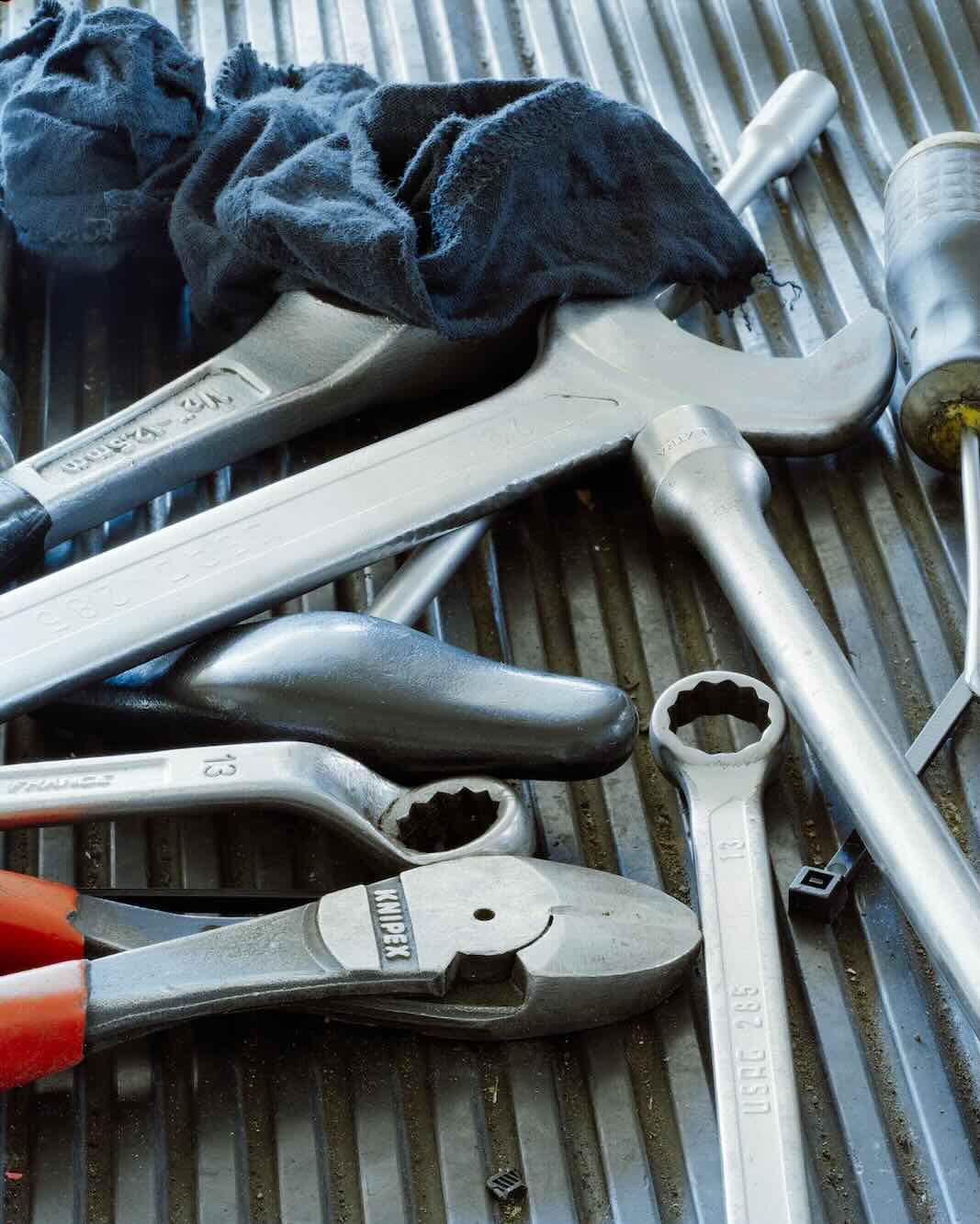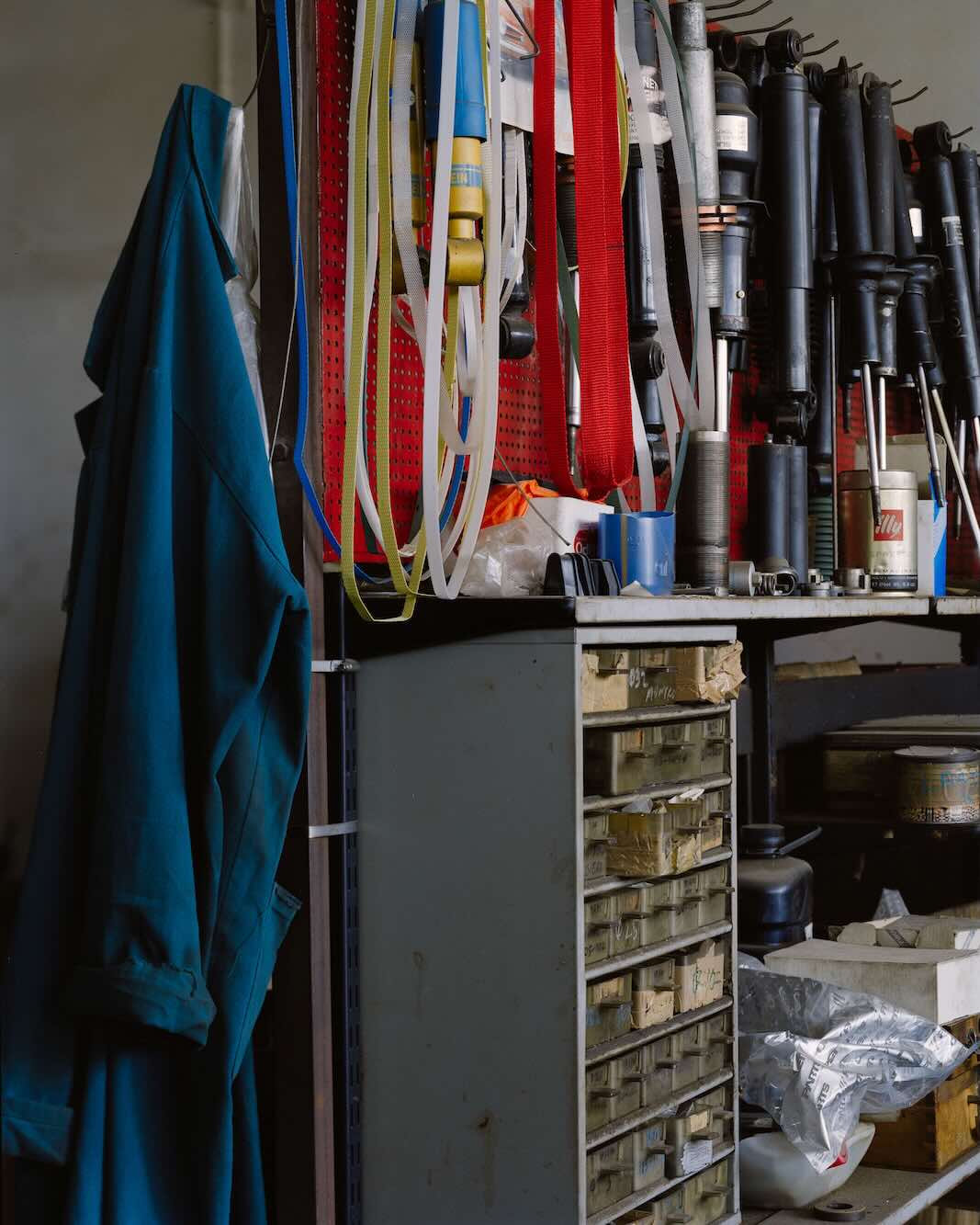 Οι άνθρωποι του συνεργείου — ο Ηλίας, ο Χρήστος και η Κούλα — συνεχίζουν τις καθημερινές τους κινήσεις που καθρεφτίζουν τον αργό ρυθμό της δημιουργίας. Οι χειρονομίες τους αποτυπώνονται στις επιφάνειες και στα αντικείμενα, υπογραμμίζοντας την ένταση ανάμεσα στην αντοχή και την παρακμή. Μέσα από αυτόν τον κοινό ρυθμό, το έργο ανοίγει έναν χώρο σκέψης για το πώς κατοικούμε σε μέρη που κουβαλούν τις μνήμες μας. Η φωτογράφιση γίνεται μια πράξη φροντίδας, αφού κάθε μακρά έκθεση επιχειρεί να διατηρήσει το εύθραυστο πριν χαθεί. Και έτσι, το συνεργείο μετατρέπεται σε ευκαιρία να αναρωτηθούμε πώς επισκευάζουμε, πώς θυμόμαστε και πώς ζούμε μέσα στους χώρους της δικής μας ιστορίας.