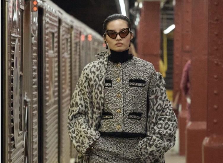 Το show εξελίχθηκε σαν σκηνή από ταινία. Μοντέλα έβγαιναν από βαγόνια, περπατούσαν ανάμεσα σε turnstiles και πλακάκια, σαν καθημερινοί New Yorkers που τυχαίνει να φοράνε… haute couture. Η αισθητική ισορροπούσε ανάμεσα στο εμβληματικό tweed και σε πιο street-wise στοιχεία, δημιουργώντας έναν διάλογο ανάμεσα στο savoir-faire των ατελιέ και στο urban pulse της πόλης.