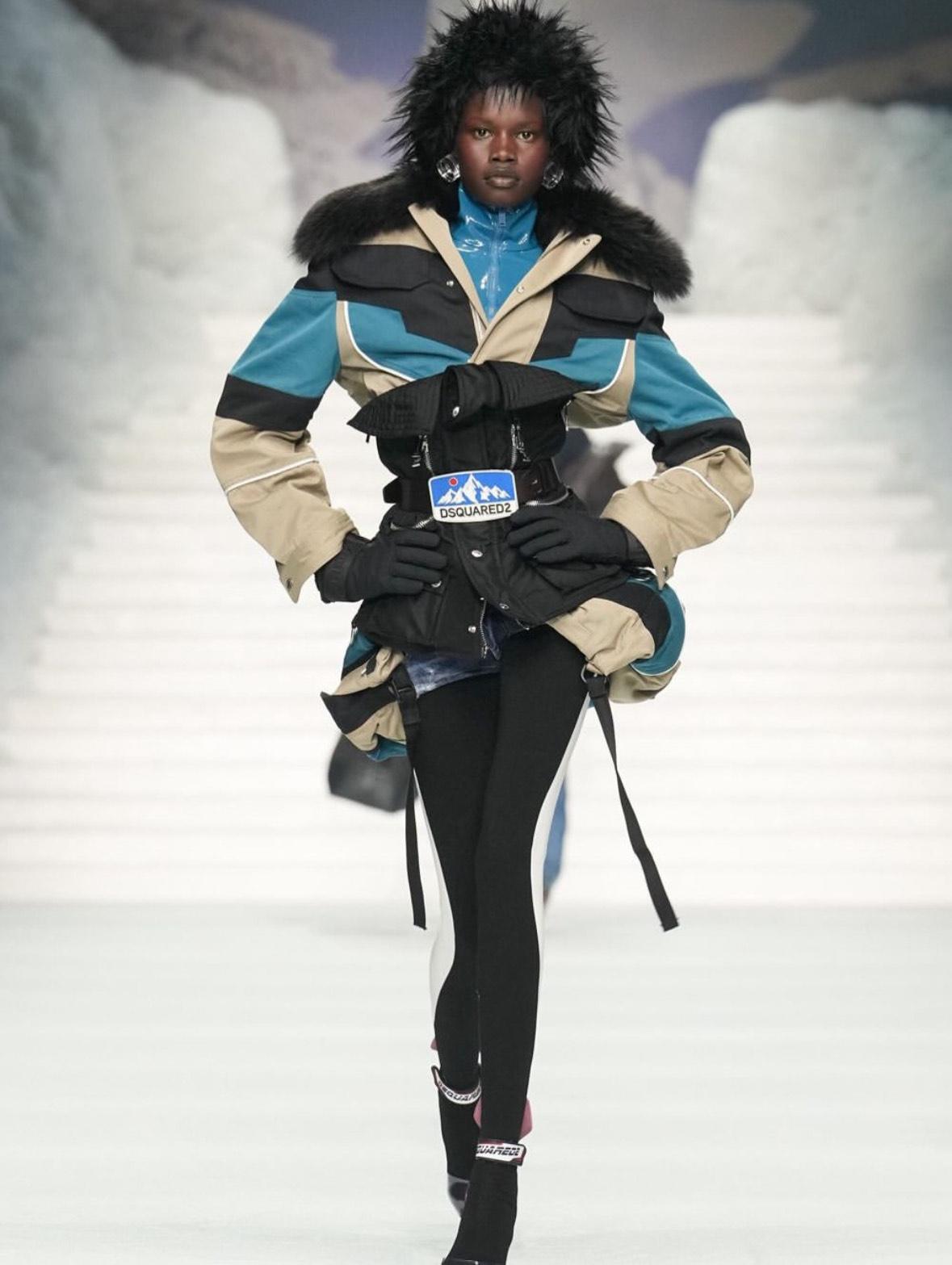 Η DSquared2 παρουσίασε τη DSquared2 Fall/Winter 26/27 συλλογή στο Μιλάνο σαν μια χειμερινή εξόρμηση που ισορροπεί ανάμεσα στο sport, το glam και τη θεατρικότητα που αποτελεί σταθερά το DNA του οίκου. Το catwalk μεταμορφώθηκε σε ένα σκηνικό που θύμιζε απόδραση στα χιόνια, ένα ski resort όπου οι πρωταγωνιστές δεν φοβούνται ούτε το κρύο ούτε τα βλέμματα.