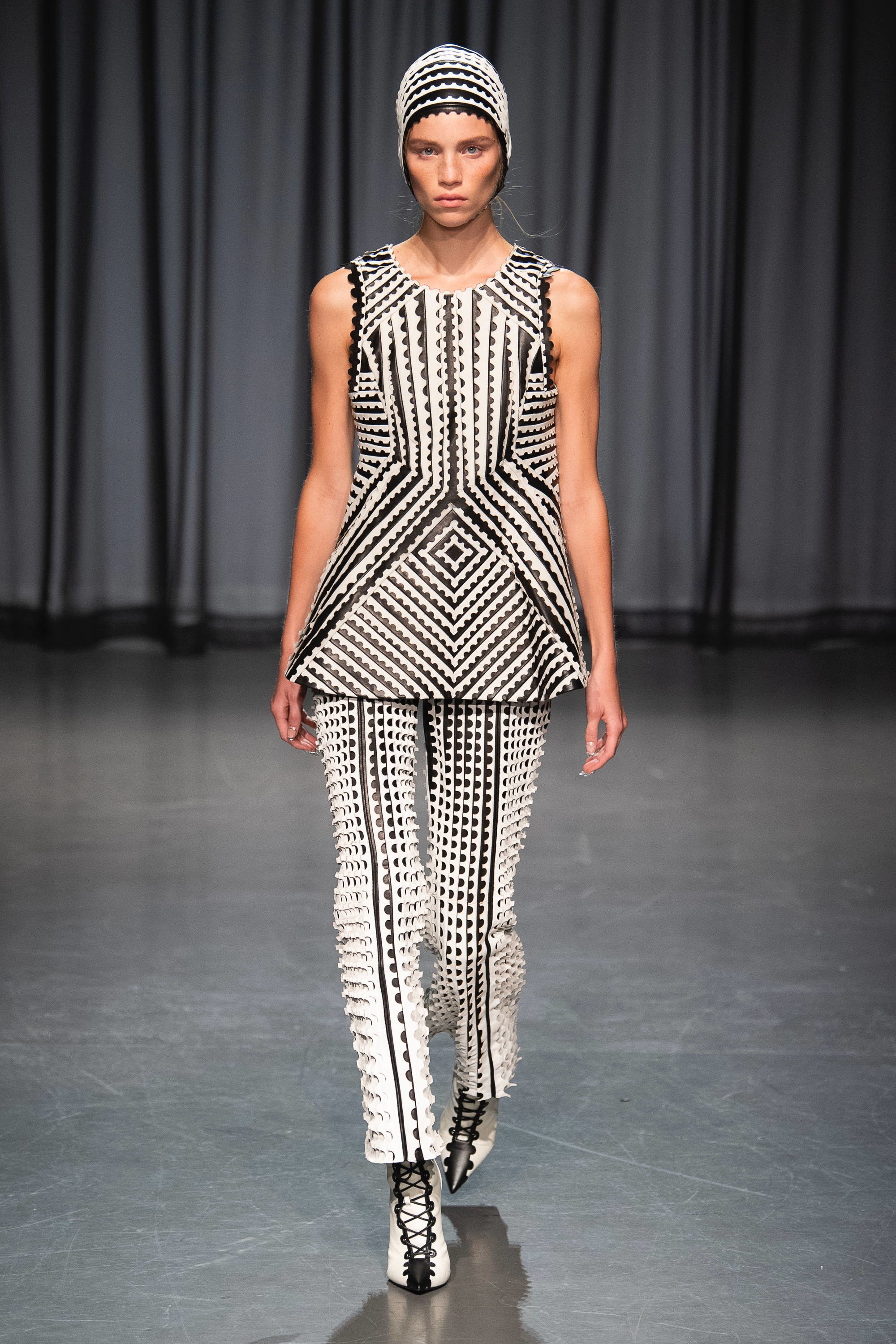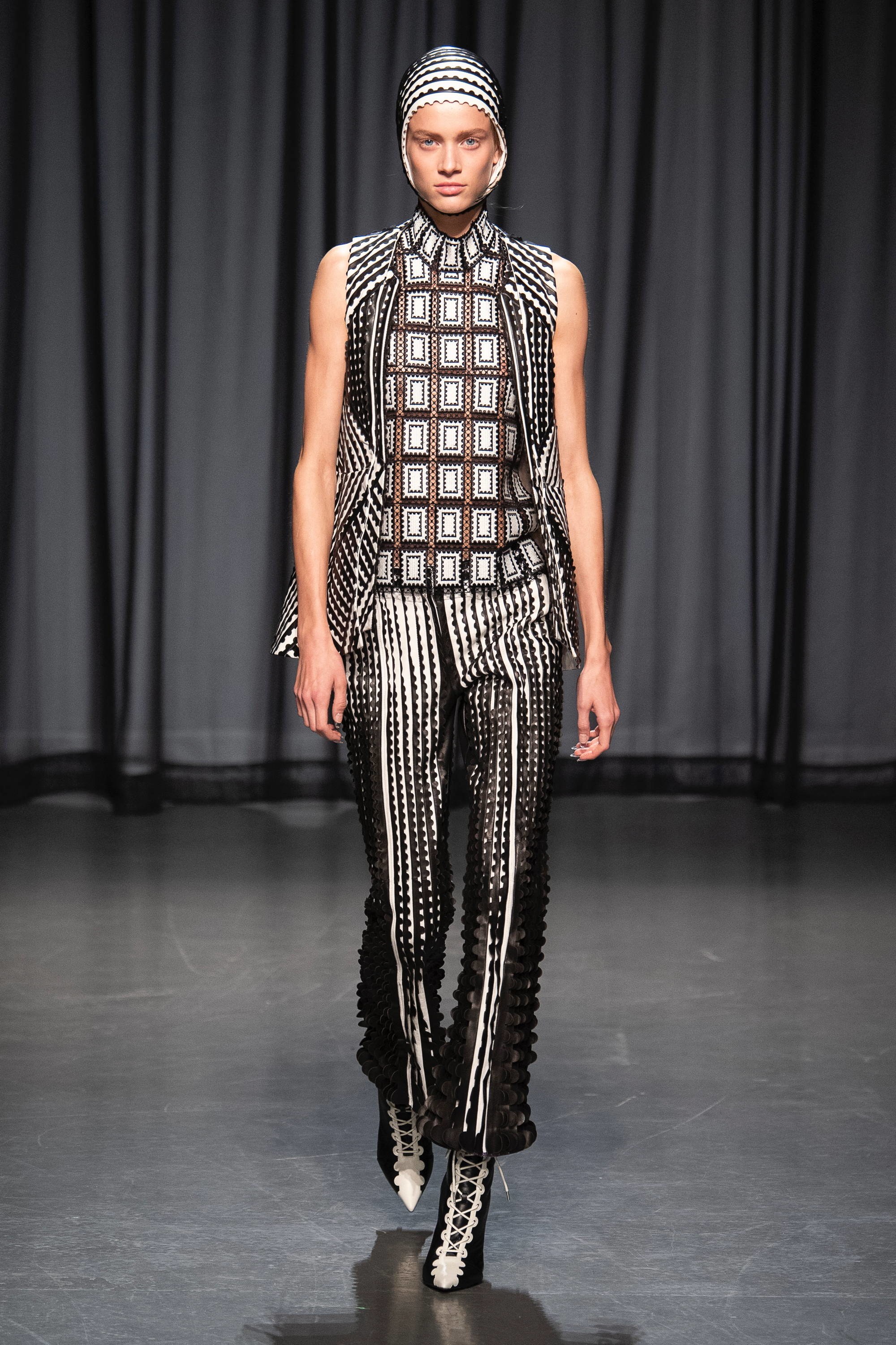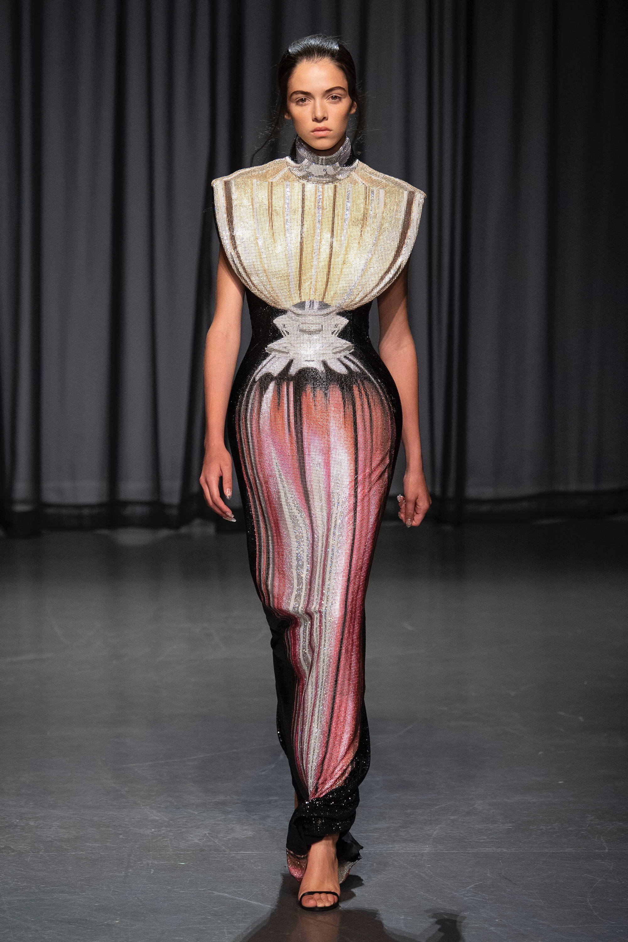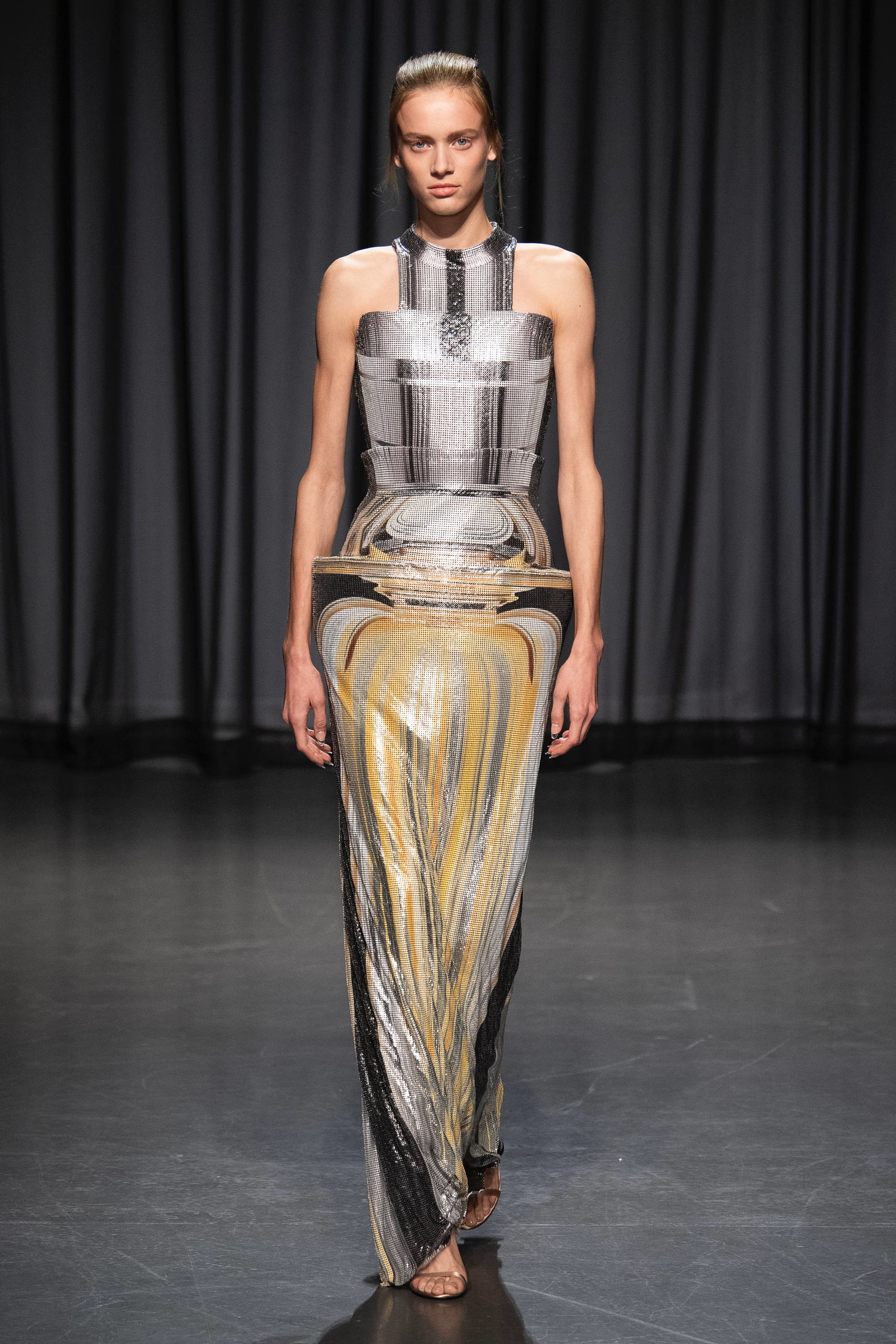 Flashback σε προηγούμενες κολεξιόν της και φρέσκια ματιά! Μερικά κομμάτια της συλλογής παρουσίαζαν γραμματόσημα ενωμένα με διάφανες λεπτομέρειες από δαντέλα ενώ πρωταγωνιστής της βραδιάς ήταν τα φορέματα με ραβδώσεις που αποτύπωναν πεταλούδες και λουλούδια. Τις εντυπώσεις κέρδισε το διάφανο jacket που ήταν στολισμένο με απομιμήσεις από κοράλλια και φύκια σε συνδυασμό με το άσπρο τούλινο φόρεμα που το συνόδευε. Η υπόλοιπη συλλογή ολοκληρώνονταν με έντονες διαφάνειες, πολυτελή υφάσματα και κομψές χρωματικές αντιθέσεις. Απολαύστε όλη τη συλλογή … εδώ!