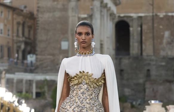 Η επιλογή του Castel Sant’Angelo ως σκηνικού για την επίδειξη της συλλογής “Alta Moda” δεν ήταν απλώς μια αισθητική απόφαση, αλλά μια συμβολική κίνηση. Ανάμεσα στις πέτρες του Foro Romano, στην καρδιά της Via Sacra, εκεί όπου γεννήθηκε η έννοια της αυτοκρατορίας, η Αιώνια Πόλη μετατρέπεται σε σκηνή ενός θεάματος που ξεπερνά την έννοια της επίδειξης μόδας. Είναι μια τελετουργική αναβίωση της μνήμης, ένα ταξίδι στον χρόνο μέσα από ύφασμα, χρώμα και δεξιοτεχνία.