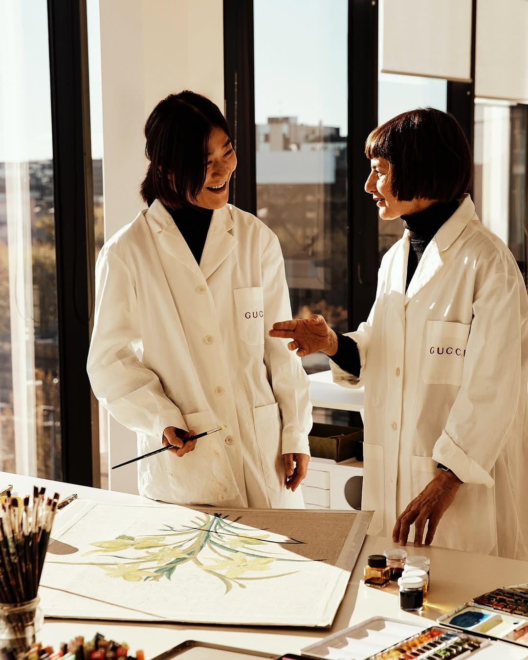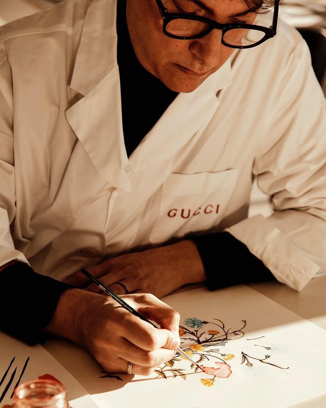 Το 90 x 90 εντάσσεται στο ευρύτερο πρόγραμμα The Art of Silk, μια πρωτοβουλία που γιορτάζει την ιστορία και την ποιότητα των μεταξωτών φουλαριών της Gucci, καθώς και τον ρόλο τους ως πολιτιστικού φορέα και καλλιτεχνικής δημιουργίας. Κάθε καλλιτέχνης κλήθηκε να αντλήσει έμπνευση από πέντε θεματικούς άξονες του αρχείου του οίκου: flora, fauna, nautical, equestrian και φυσικά, το εμβληματικό double-G monogram, το οποίο φέτος γιορτάζει 50 χρόνια ζωής.