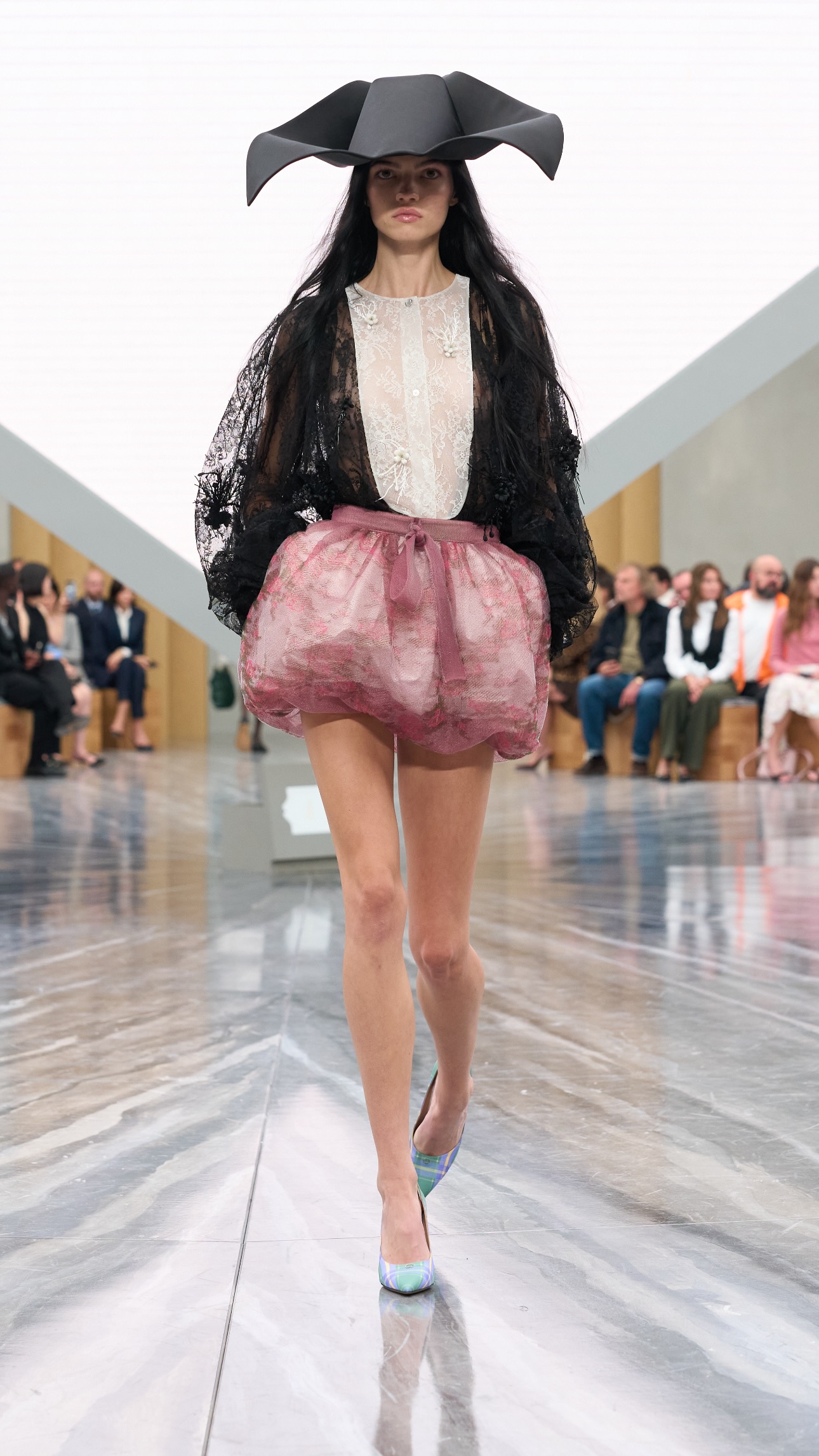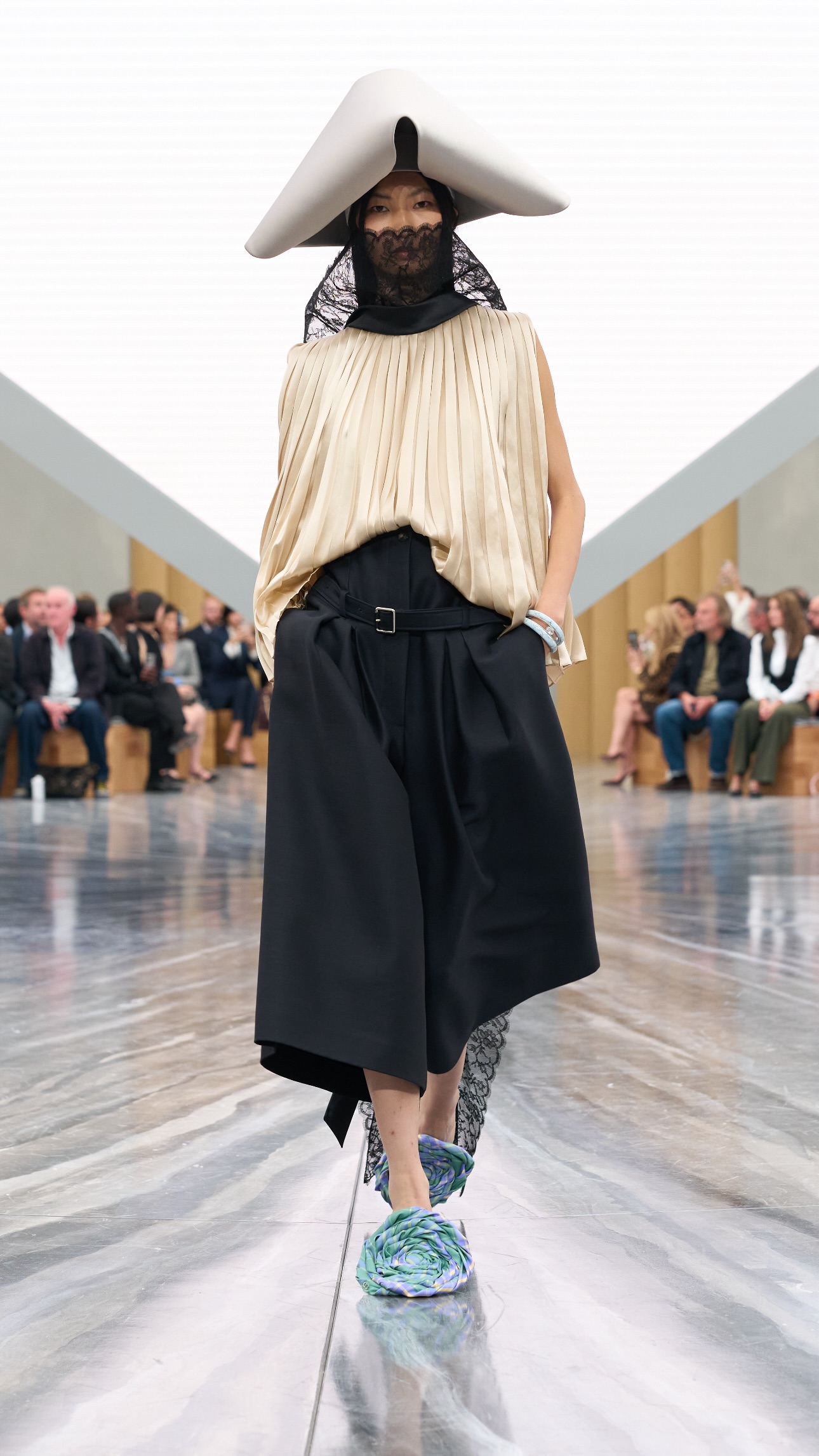 Η έννοια της «έντασης» -ανάμεσα στη φαντασία και το πραγματικό, ανάμεσα στην κληρονομιά και το παρόν- βρισκόταν στον πυρήνα της δουλειάς του. Ο Jonathan Anderson μίλησε για το ντύσιμο ως «τρόπο να γίνεις χαρακτήρας πάνω στη σκηνή της ζωής». Αυτό το θεατρικό πνεύμα, άλλωστε, διαπέρασε κάθε λεπτομέρεια του show.