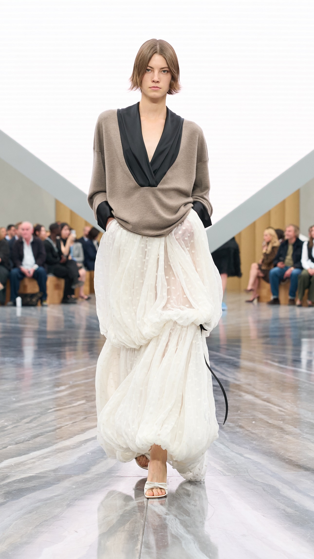 Το απόγευμα της Τετάρτης, η πρώτη του συλλογή για την άνοιξη/καλοκαίρι 2026 έδωσε την απάντηση -ο Anderson δεν μπαίνει απλώς σε ένα ιστορικό σπίτι μόδας, αλλά επιχειρεί να το επαναπροσδιορίσει, θέτοντας τα θεμέλια μιας νέας δημιουργικής γλώσσας.