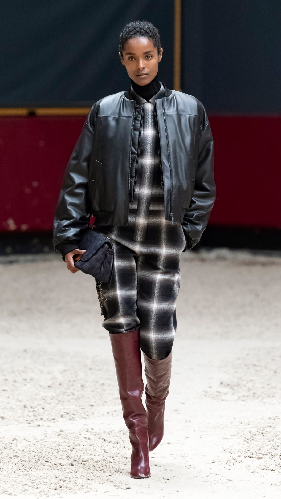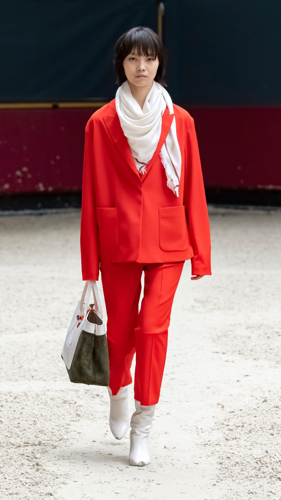 Το σόου άνοιξε η Mica Arganaraz, με ένα μαύρο σακάκι σαφάρι, κόκκινο πουλόβερ και κοντό λευκό σορτς με μαύρες γαλότσες, από τις οποίες ξεχώριζαν οι ψηλές κόκκινες κάλτσες – ένα look που προβλέπεται να γίνει iconic με τον effortless συνδυασμό πρακτικότητας και ανεπιτήδευτης κομψότητας. Αυτή η παλέτα χρωμάτων, το στυλ ιππασίας και το παριζιάνικο ύφος ήταν και οι σταθεροί άξονες γύρω από τους οποίους ξεδιπλώθηκε το σύνολο της κολεξιόν. Η σπορ διάθεση ισορρόπησε τέλεια με τα αέρινα midi φορέματα και τα cropped παντελόνια φορεμένα με ψηλές μπότες πάνω από το γόνατο, αποπνέοντας έναν θηλυκό αέρα μέσα από τις διαφορετικές όψεις του parisienne χαρακτήρα της Longchamp.