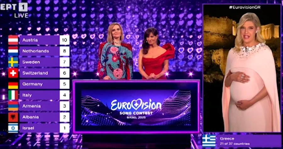 Λαμπερή, με φουσκωμένη κοιλίτσα και επιλέγοντας δημιουργία υψηλής ραπτικής, η Τζένη Θεωνά εμφανίστηκε στον τελικό της Eurovision 2025 για να ανακοινώσει τη βαθμολογία του ελληνικού κοινού. Η παρουσία της, όπως ήταν αναμενόμενο, συγκέντρωσε το ενδιαφέρον στα μέσα κοινωνικής δικτύωσης.