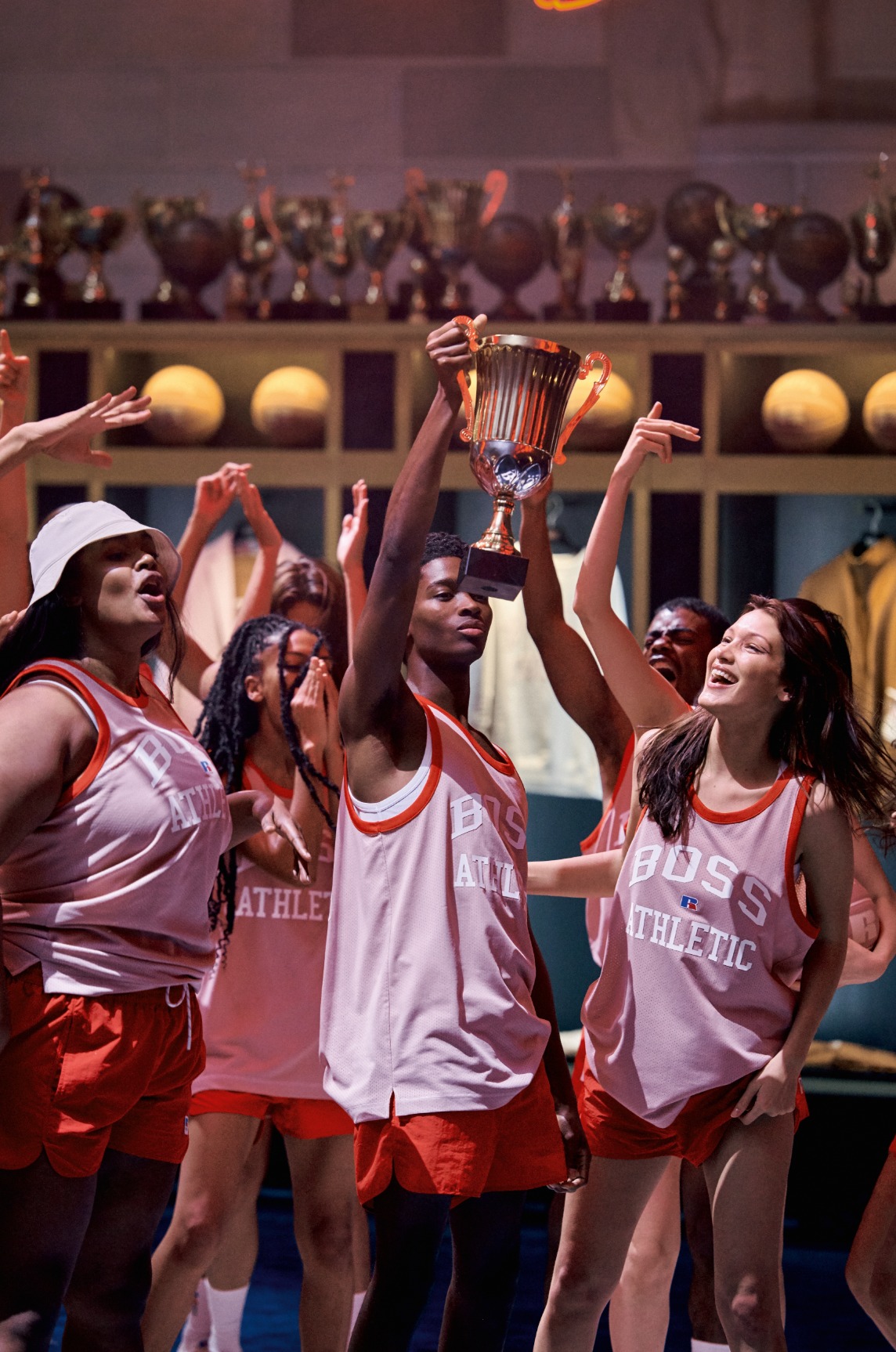 Το βίντεο μας μεταφέρει λοιπόν στα αποδυτήρια και τον αγωνιστικό χώρο ενός γηπέδου μπάσκετ, για να παρακολουθήσουμε μια ομάδα μπάσκετ που μόλις στέφθηκε πρωταθλήτρια και πανηγυρίζει τον τίτλο της. Ανάμεσα στα μέλη της, μερικά πολύ γνώριμα πρόσωπα, κάποιοι από τους σημαντικότερους influencers, μοντέλα και style icons: οι Ashley Graham, Bella Hadid, Precious Lee, Lucky Blue Smith, Keith Powers κ.ά, σε μια ατμόσφαιρα με εορταστικά vibes, πανηγυρίζουν, χορεύουν, βγάζουν φωτογραφίες και διασκεδάζουν όλοι μαζί, αναδεικνύοντας τη νέα συλλογή BOSS x Russell Athletic – και αποδεικνύοντας ότι αυτή η συνεργασία φέρνει στην κορυφή μια αήττητη ομάδα.