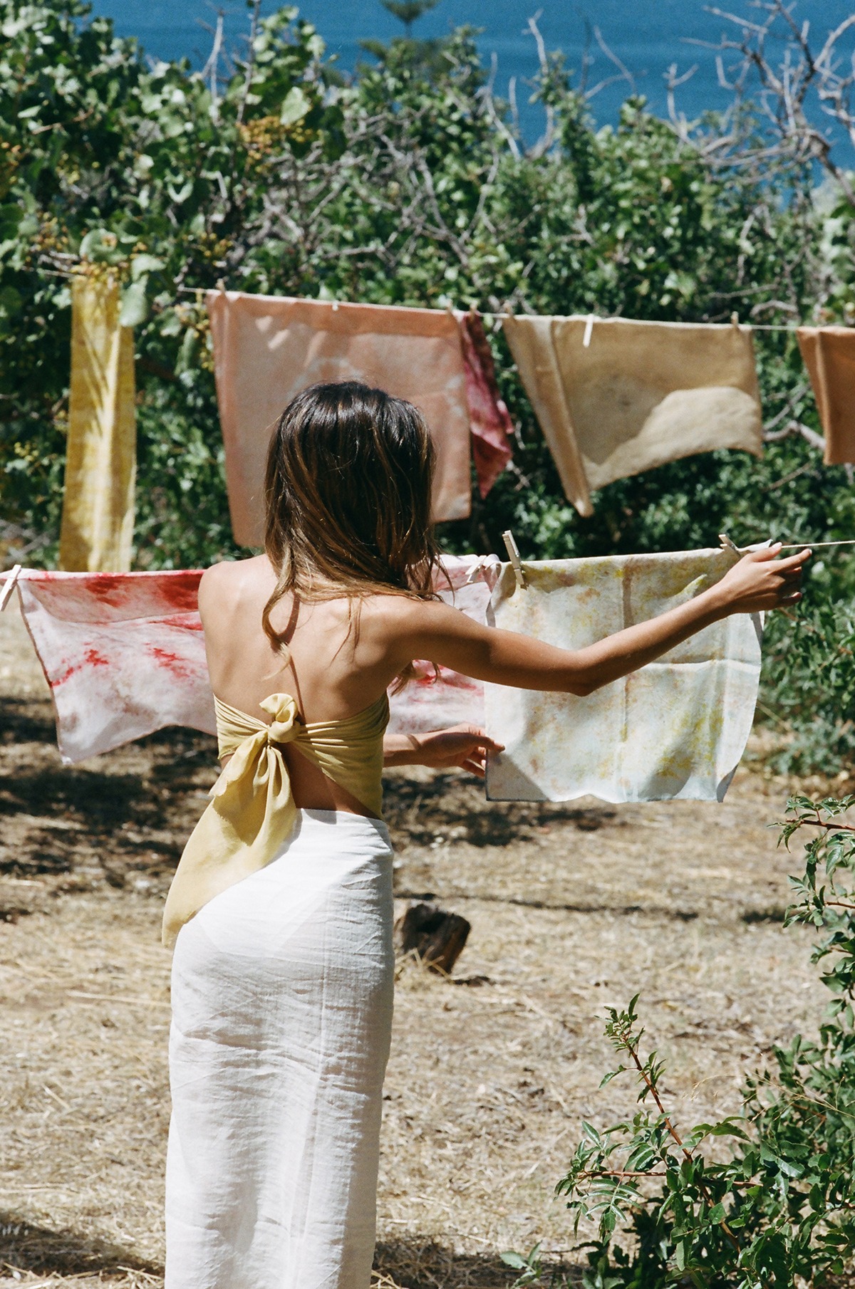 Στο Fashion Room Service See Now Buy Edition αποφάσισα να παρουσιάσω μία σειρά από μαντήλια τα οποία μπορούν να φορεθούν με διαφορετικούς τρόπους, δηλαδή ως ζώνες, μαντήλια λαιμού, αξεσουάρ για τα μαλλιά, τοπ/μπλούζες, εσάρπες. Πέρα από τις φυσικές βαφές και το slow process στο χέρι που χαρακτηρίζουν όλες μας τις δημιουργίες, ο λόγος που διάλεξα συγκεκριμένα αυτά τα τεμάχια είναι γιατί αναδεικνύουν πως ένα κομμάτι υφάσματος επεξεργασμένο με φροντίδα και διαχρονικό όραμα μπορεί να προσαρμοστεί φυσικά πάνω στο κάθε σώμα και να χρησιμοποιηθεί με πολλούς τρόπους.