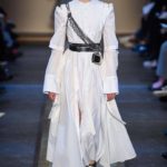 Από την άλλη πλευρά, ολόκληρο το σκηνικό του fashion show ήταν πιστή απεικόνιση ενός industrial περιβάλλοντος και μάλιστα θύμιζε εργοστάσιο που φτιάχνει υφάσματα. Οι θεατές κάθονταν πάνω σε ρολά υφάσματος, το catwalk αποτελούνταν από ξύλινες παλέτες ενώ ανάμεσα στις αιθέριες δημιουργίες ξεπηδούσαν total leather outfits, αυστηρά ανδρόγυνα κομμάτια και αξεσουάρ και κοσμήματα διακοσμημένα με τρουκς και αλυσίδες.