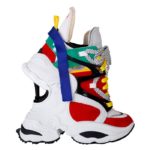 To παπούτσι Dsquared2 GIANT μοιάζει να είναι όχι ένα, αλλά δύο ζευγάρια chunky, 90s-style sports sneakers, όπου το ένα πατάει πάνω στο άλλο. Το ύψος του φαντάζει κάπως τρομακτικό και το brand Dsquared2 δείχνει να μην φοβάται τις υπερβολές, μιας και πολλάκις έχει παρουσιάσει εκκεντρικά παπούτσια στην πασαρέλα.