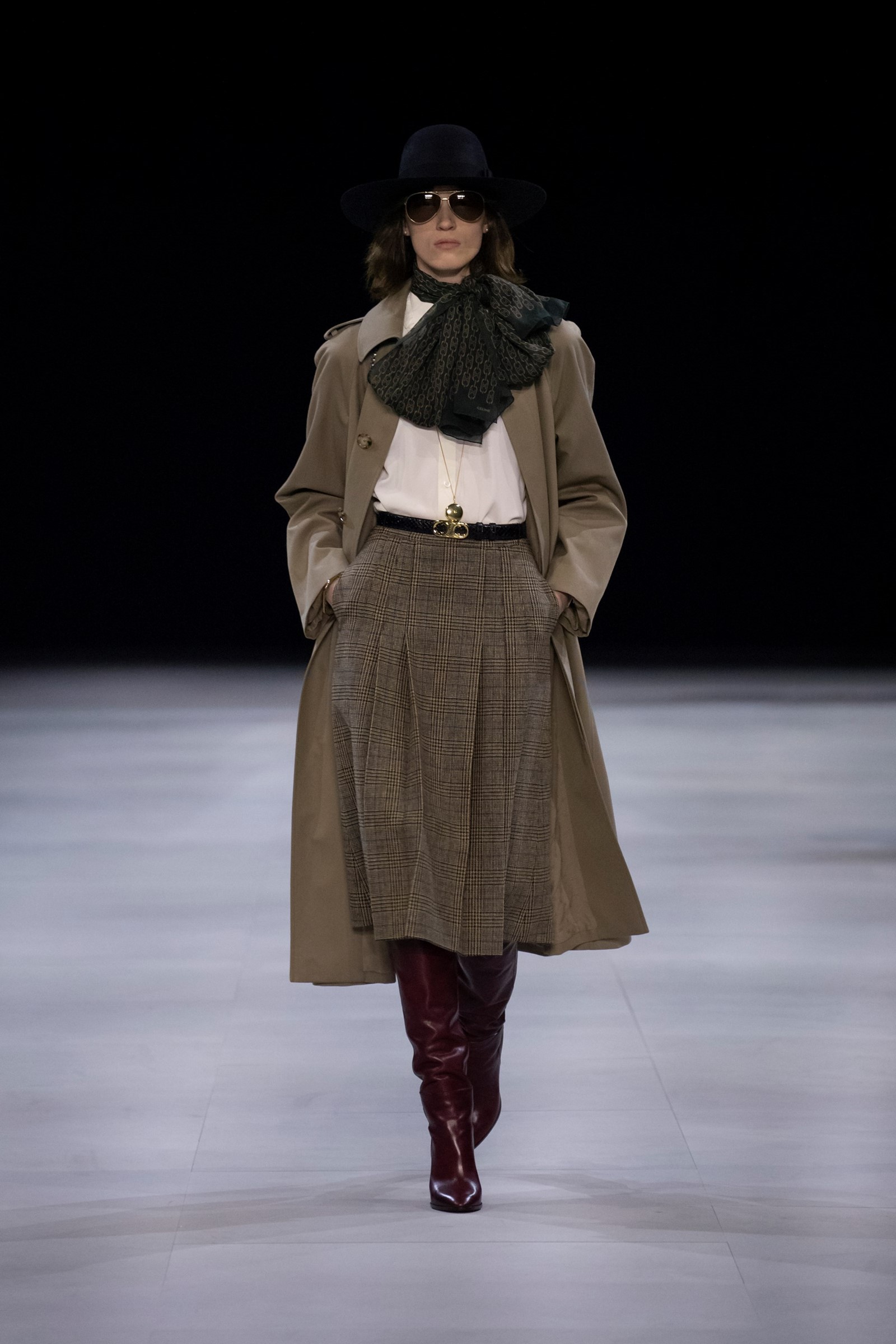 Ο creative director της Celine εμπνεύστηκε κάτι κομψό και κλασσικό. Ψηλόμεση cullotes ως το γόνατο, πλισέ, σαν βγαλμένη από το αρχείου οίκου.