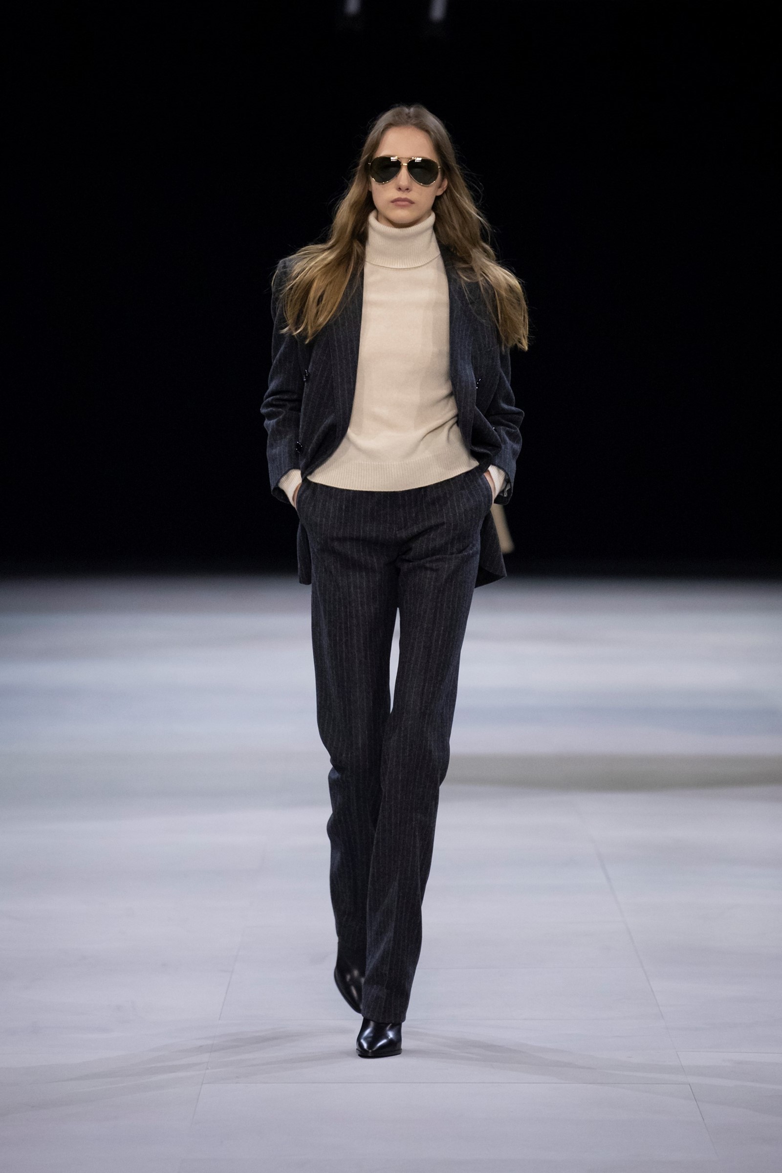 Η collection σηματοδότησε μια στροφή στις εικόνες της διαχρονικής μούσας Celine, μιας γυναίκας του Παρισιού, χωρίς υπερβολές, που μπορεί να συμβαδίζει με την καθημερινότητα του σήμερα. Blazers και κοστούμια, oversized παλτό, τζιν παντελόνια, pleated skirts, με παριζιάνικα vibes της δεκαετίας του ‘70 και του ‘80.
