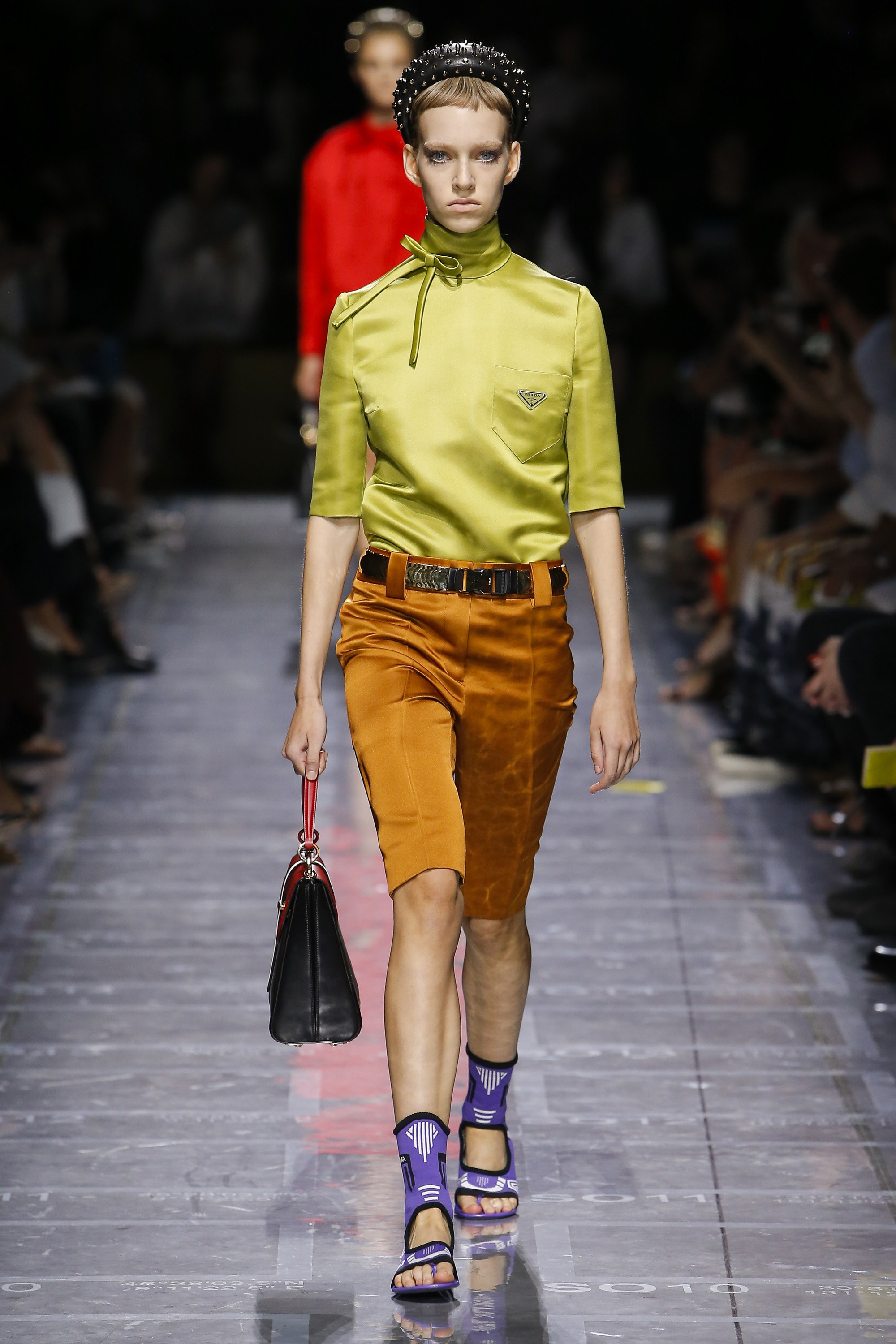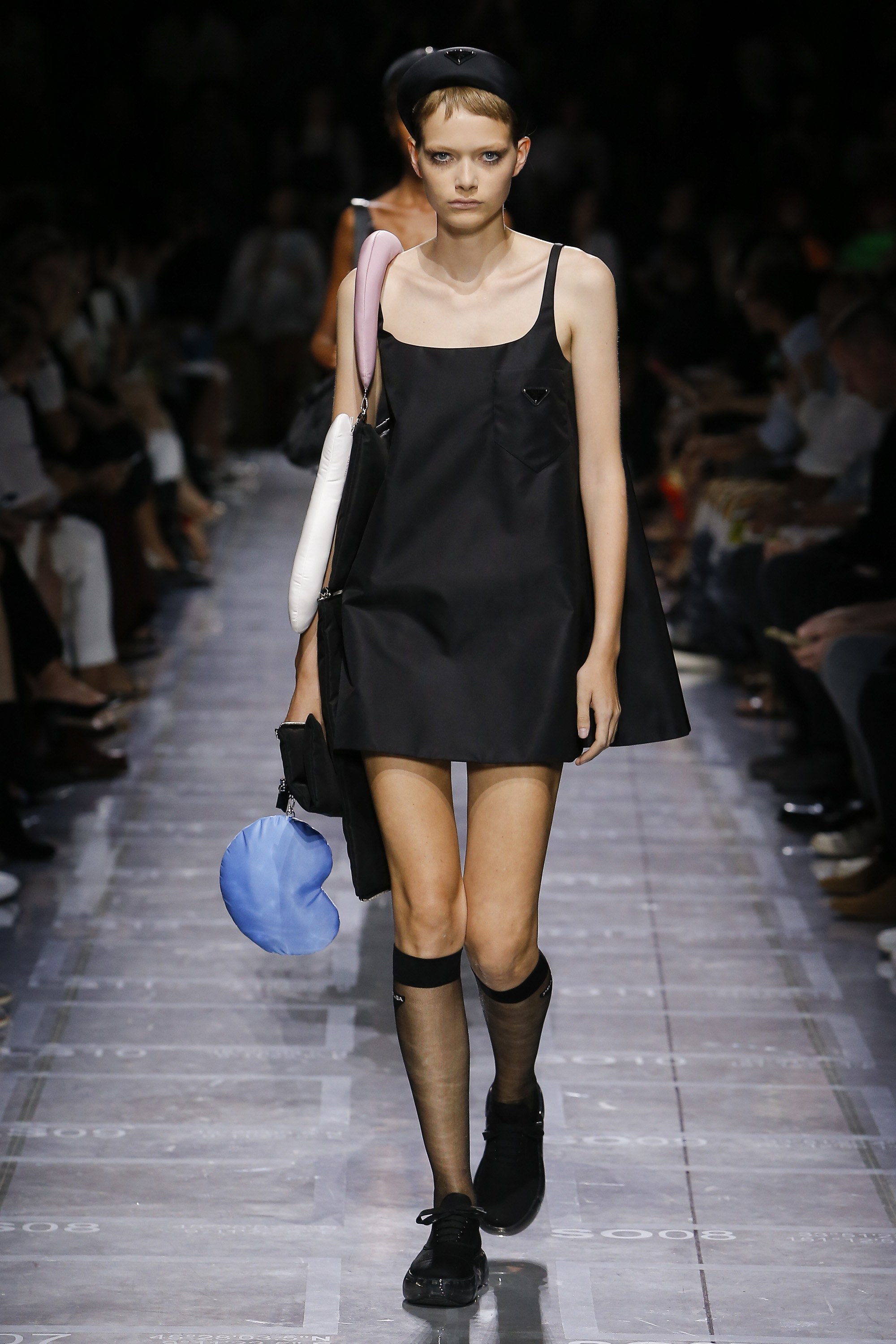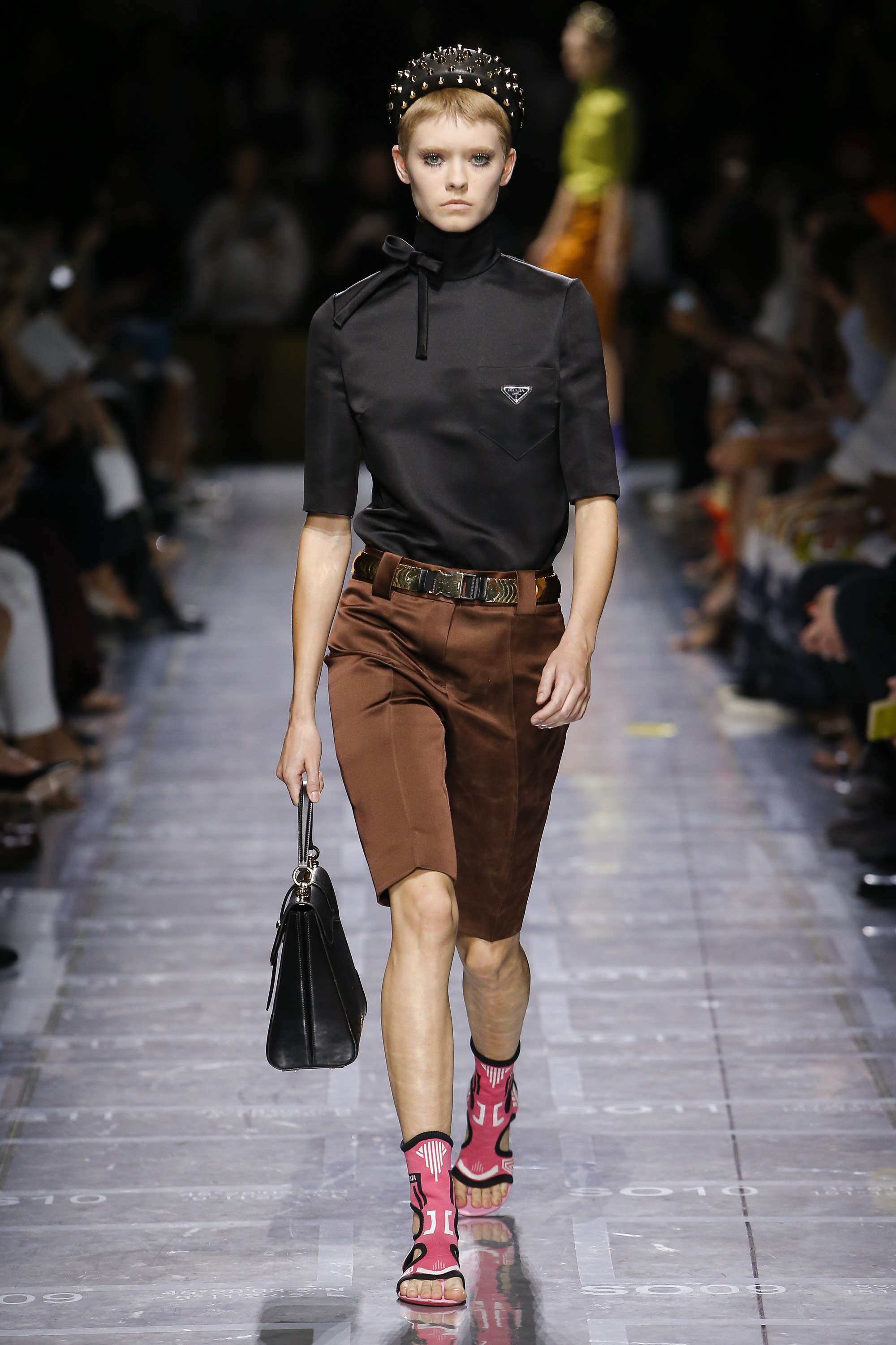 Στην τελευταία κολεξιόν spring/summer 2019, η Miuccia Prada αποπειράται να σπάσει τους κανόνες του κλασσικού και να συνδυάσει την απόλυτη απελευθέρωση του στυλ με τον ακραίο συντηρητισμό. Biker shorts και baby doll φορέματα, επιρροές από τα 60s και τα 70s και oversized πανωφόρια κάνουν αίσθηση σε μία ready-to-wear κολεξιόν που λατρέψαμε.