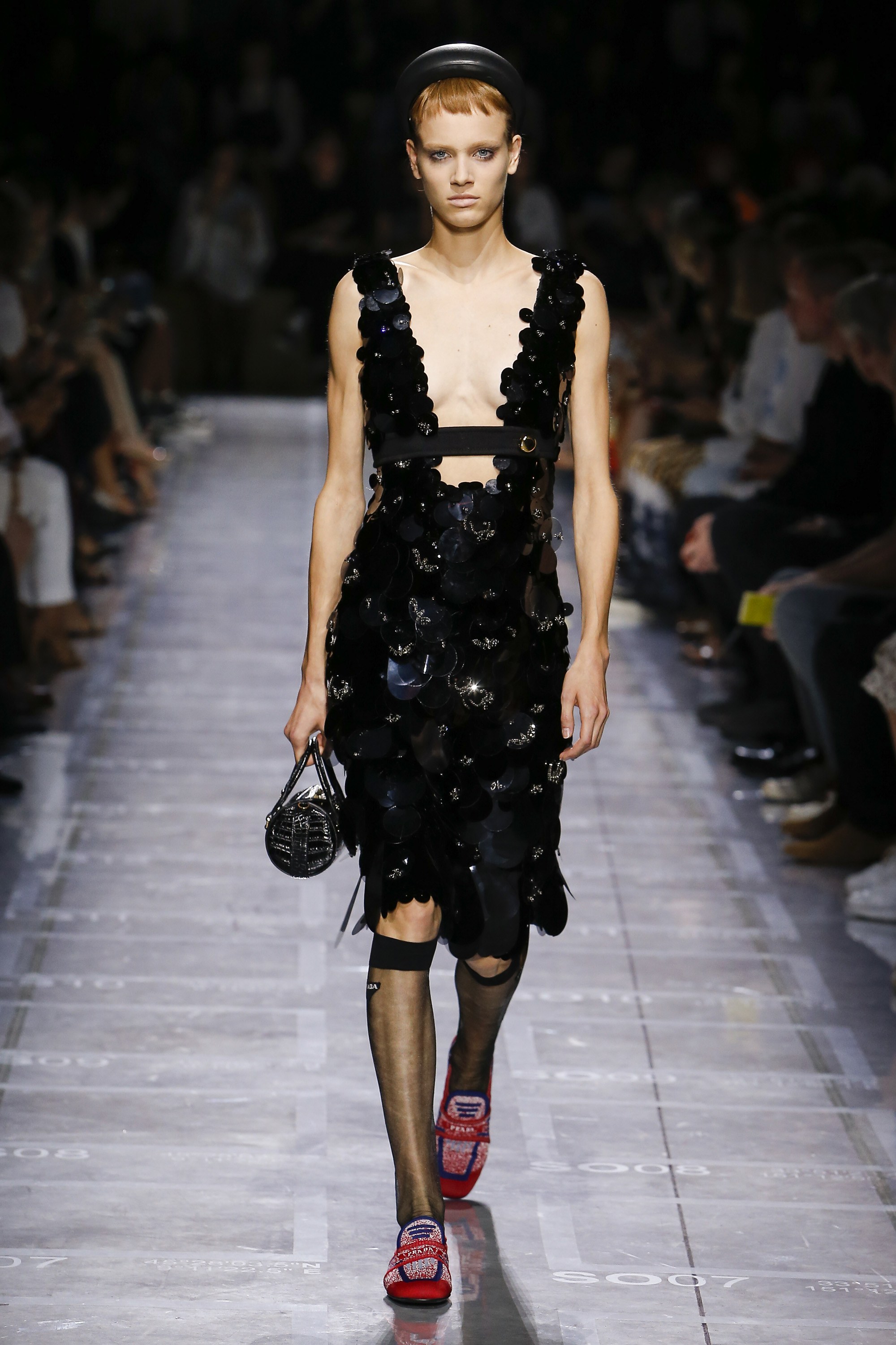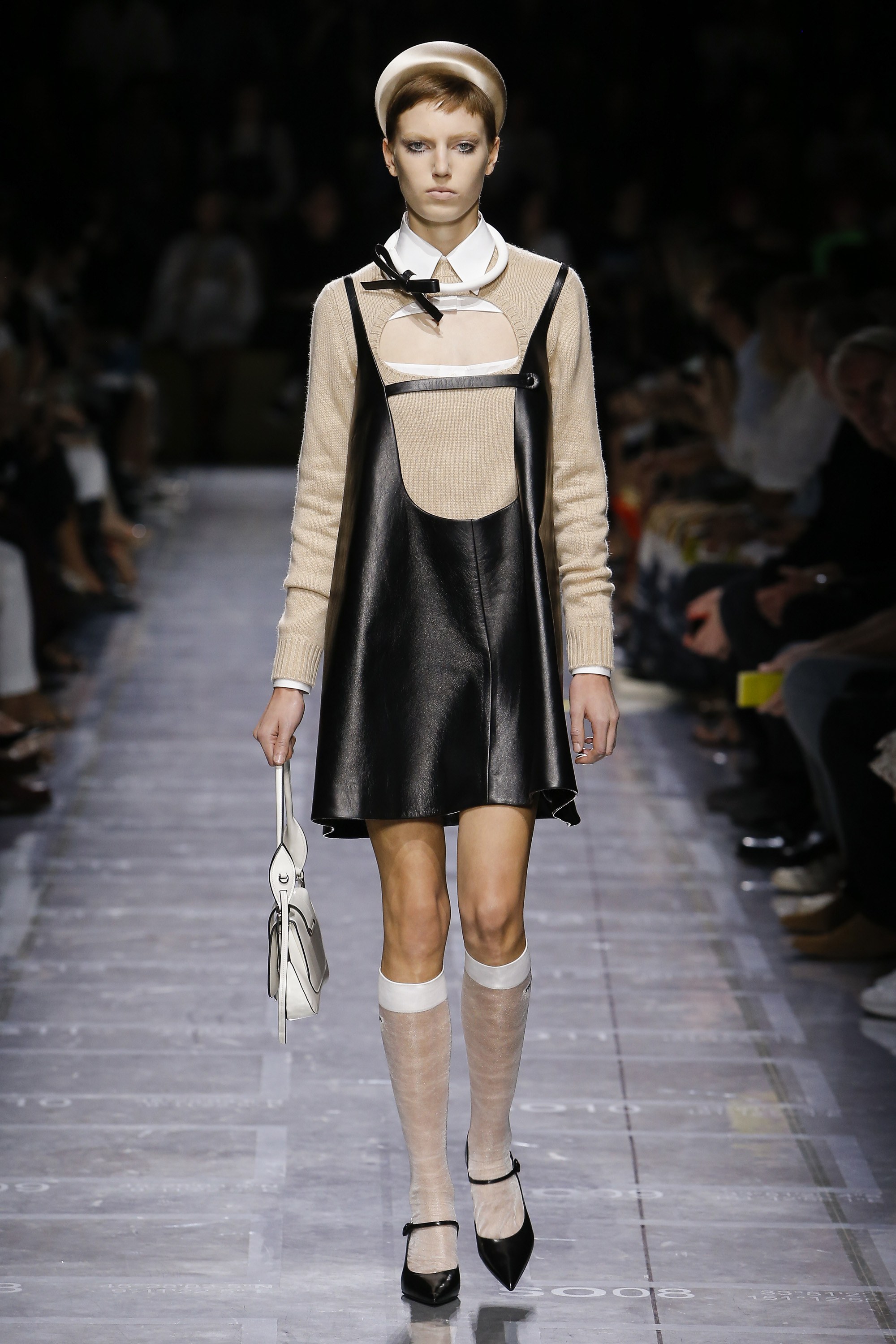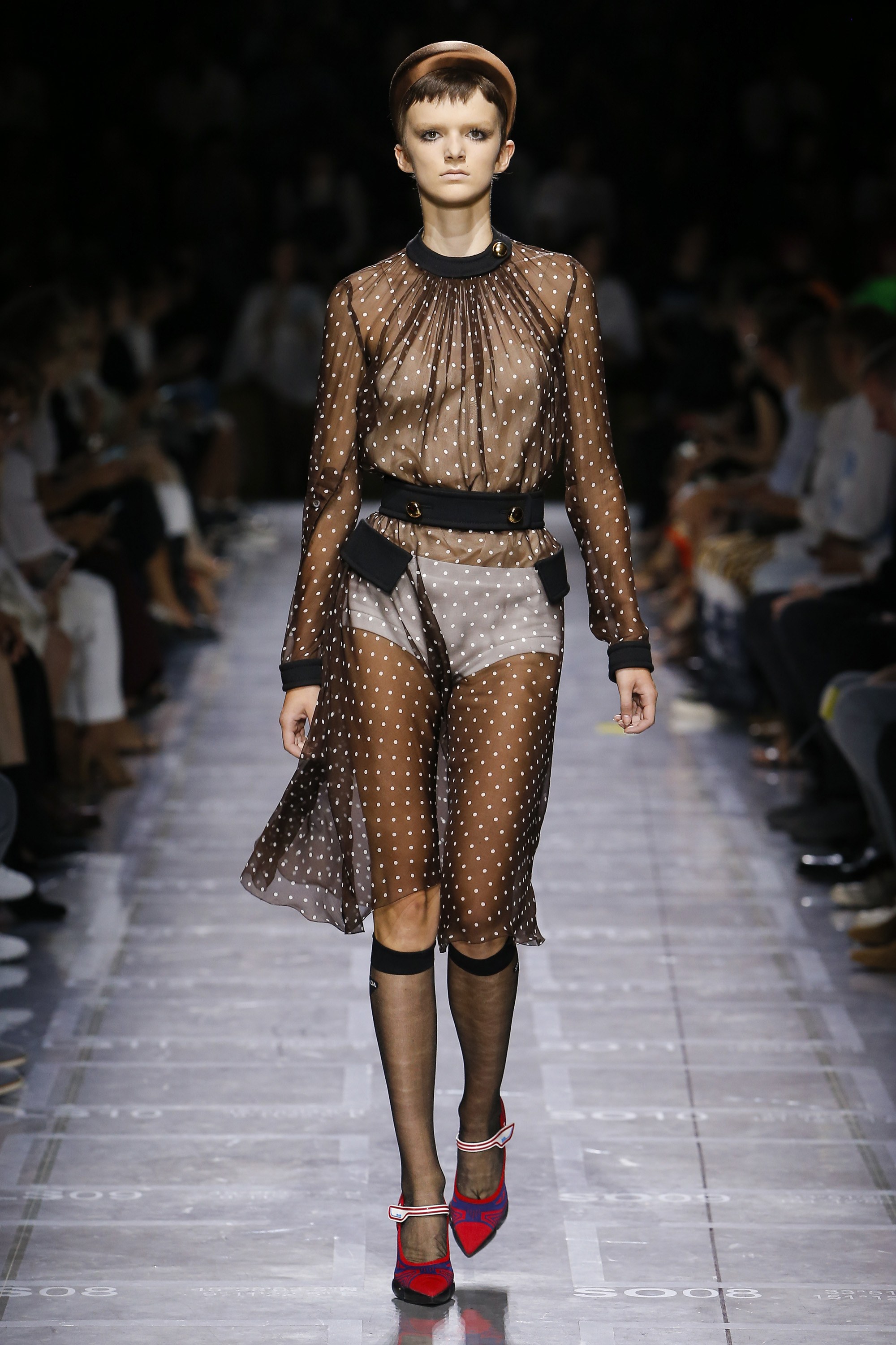 Στην τελευταία κολεξιόν spring/summer 2019, η Miuccia Prada αποπειράται να σπάσει τους κανόνες του κλασσικού και να συνδυάσει την απόλυτη απελευθέρωση του στυλ με τον ακραίο συντηρητισμό. Biker shorts και baby doll φορέματα, επιρροές από τα 60s και τα 70s και oversized πανωφόρια κάνουν αίσθηση σε μία ready-to-wear κολεξιόν που λατρέψαμε.