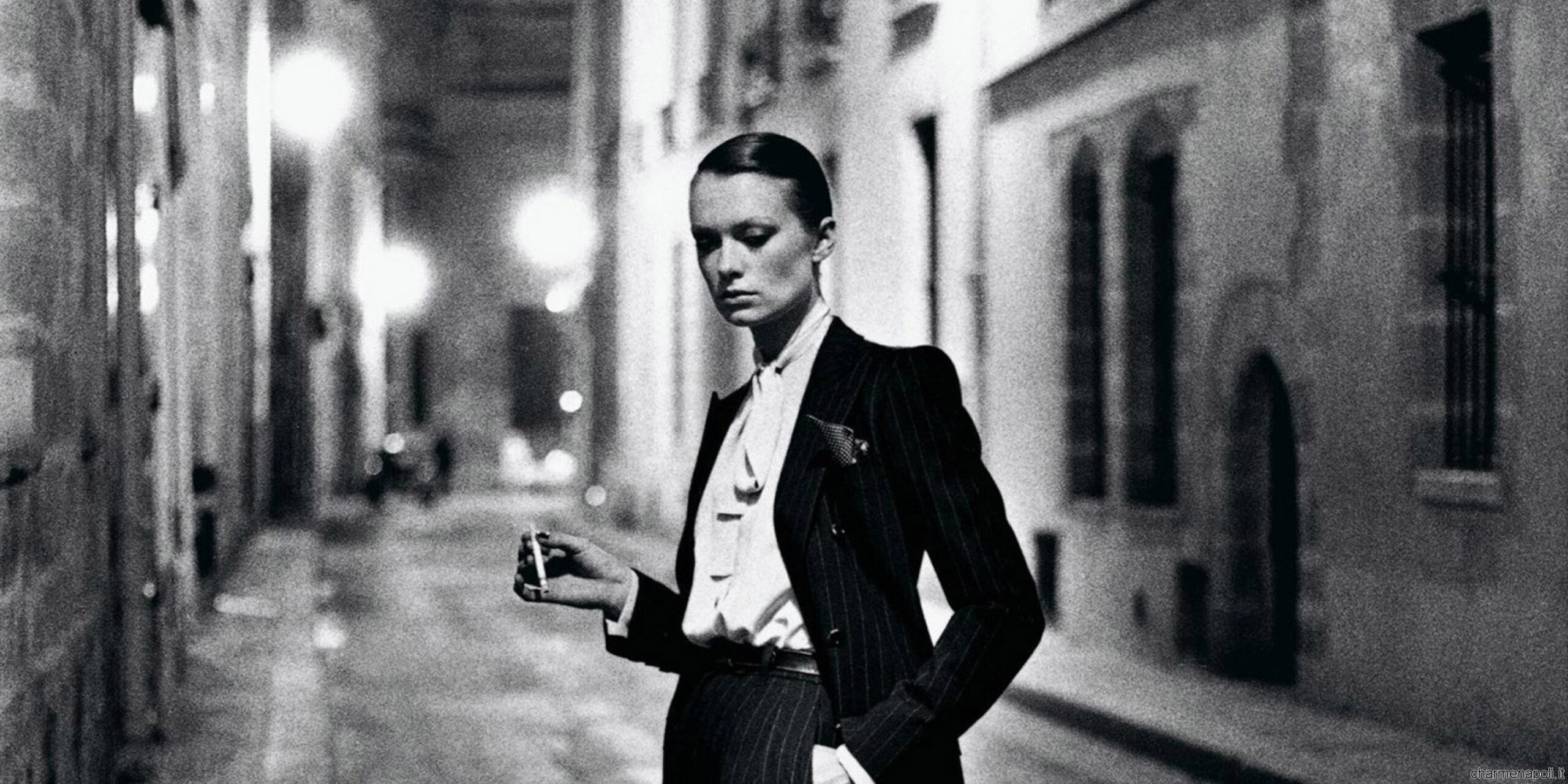 Το Le Smoking έγινε αθάνατο μέσα από τις εμβληματικές φωτογραφίες του Helmut Newton για τη γαλλική Vogue το 1975, με μια γυναίκα ντυμένη με pinstripe Le Smoking, pussybow πουκάμισο και γόβες, με τσιγάρο στο χέρι.