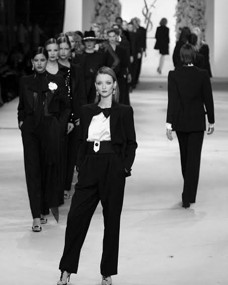«Μια γυναίκα που φοράει κοστούμι δεν είναι σε καμία περίπτωση αρρενωπή,» είχε πει ο Saint Laurent. «Η αυστηρή, καθαρή γραμμή τονίζει τη θηλυκότητά της, τη γοητεία της, την αμφισημία της.»