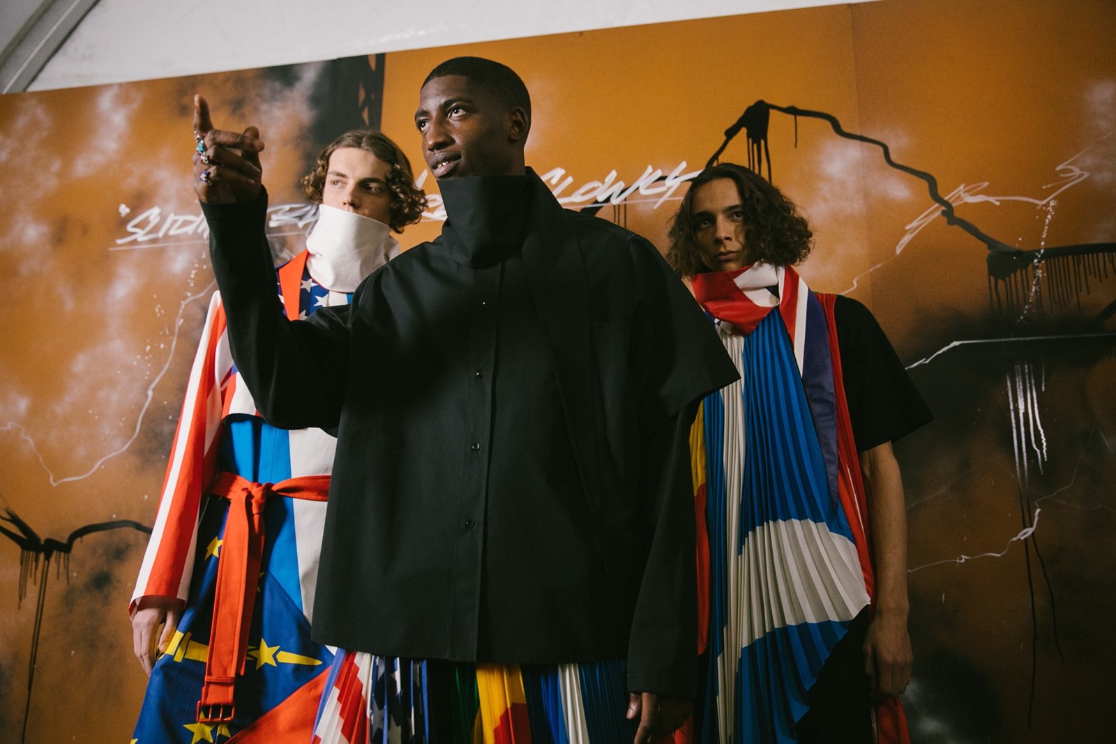 Τα μοντέλα πήγαιναν πάνω-κάτω στον δρόμο, ενώ ο graffiti artist Futura δημιουργούσε. Στα σκαλάκια των διαμερισμάτων καθόντουσαν η Naomi Campbell και οι ράπερ Skepta και Offset, ενώ πιο πέρα ο Timothee Chalamet και ο Frank Ocean, μεταξύ άλλων.