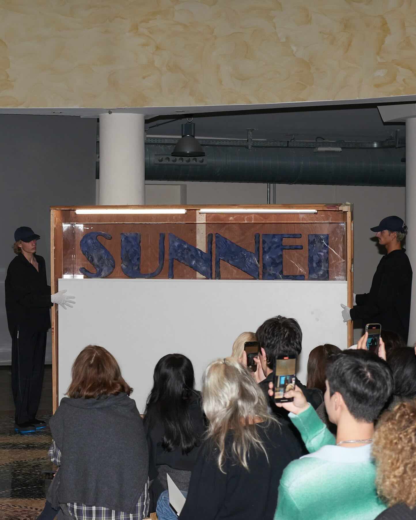 Σε συνεργασία με τον οίκο Christie’s, η Sunnei έστησε μια φανταστική δημοπρασία όπου όλα έμοιαζαν διαθέσιμα αλλά τίποτα δεν ήταν πραγματικά διαθέσιμο. Μέλη του brand εμφανίστηκαν ως τηλεφωνικοί μεσάζοντες, ντυμένοι με τη συλλογή SS26, ενώ ο Cristiano De Lorenzo (Managing Director του Christie’s Italy) διηύθυνε το «παιχνίδι». Τα ρούχα δεν ήταν το κέντρο, αλλά μέρος της σκηνογραφίας· κομμάτι της αφήγησης.