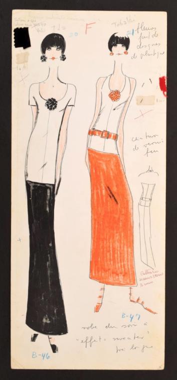 Στα σκίτσα φαίνεται η οπτική του σχεδιαστή, την οποία αποτύπωσε καθαρά στον οίκο Chanel με κομψά και κλασσικά ενδύματα.