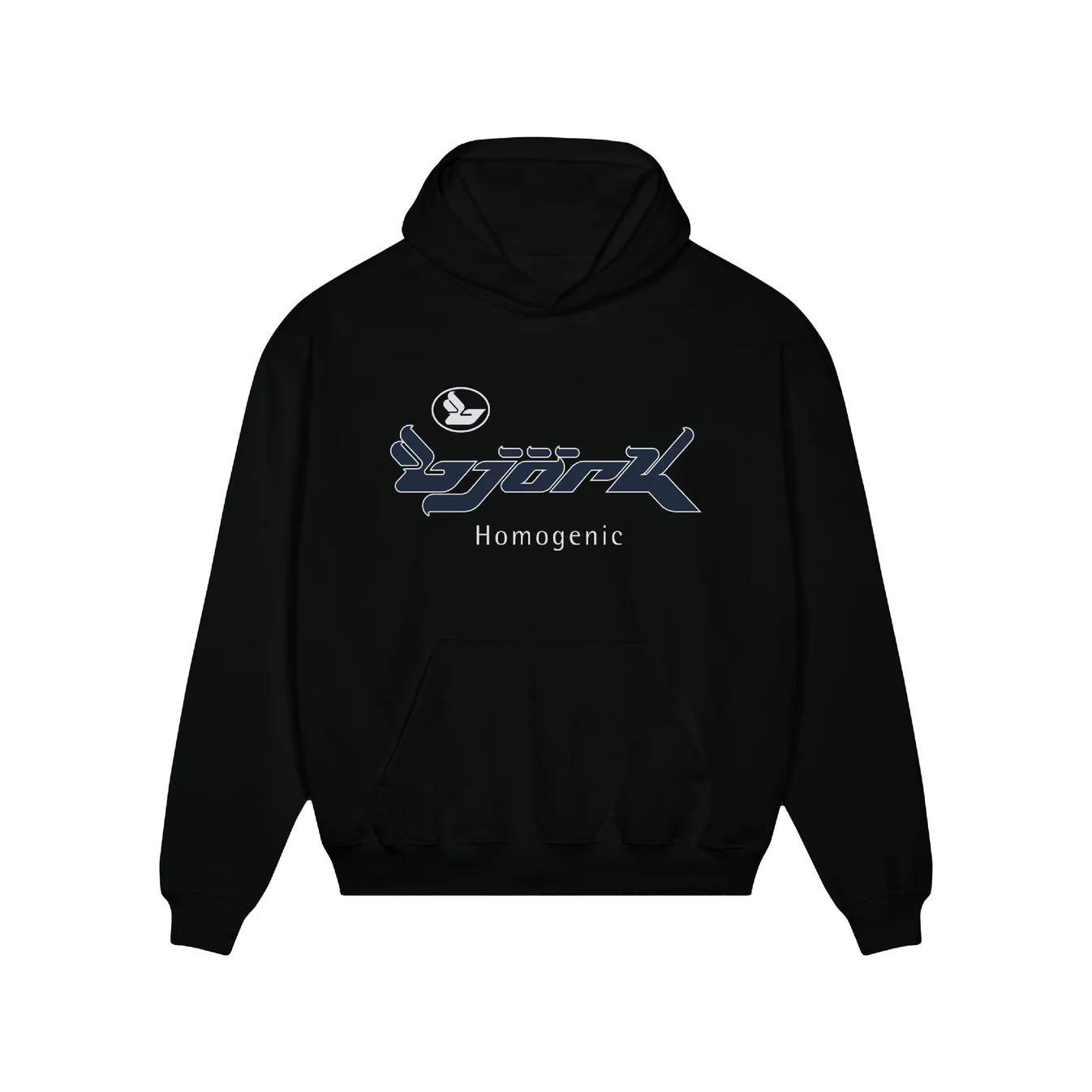 Ξεχωρίζει επίσης το μαύρο hoodie αφιερωμένο στο Homogenic, ένα άλμπουμ που άλλαξε τον τρόπο που αντιλαμβανόμαστε την ηλεκτρονική avant-pop. Είναι ένα κομμάτι που δεν λειτουργεί μόνο ως statement, αλλά και ως φόρος τιμής σε έναν δίσκο που σημάδεψε γενιές καλλιτεχνών.