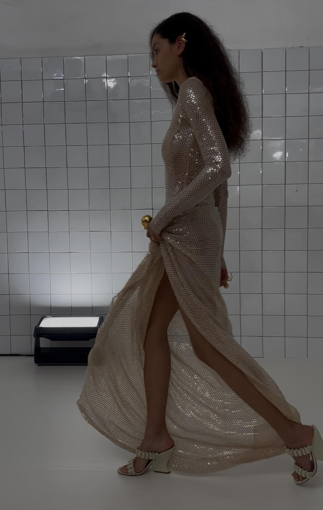 Η αφήγηση συμπληρώθηκε από αξεσουάρ: πληθώρα bucket hats, μεταλλικά στοιχεία που θύμιζαν πειρατές άλλων αιώνων, ρέλια εμπνευσμένα από τα διακοσμητικά των βαρκών, αλλά και χρυσές λεπτομέρειες που παρέπεμπαν στα μυστικά βάθη του ωκεανού. Σιλουέτες σειρήνων εμφανίστηκαν με σκέλη που λαμπύριζαν κάτω από το φως της σελήνης, ντυμένες με παγέτες, χρυσοκεντημένα τελειώματα και δίχτυα κάθε είδους·
