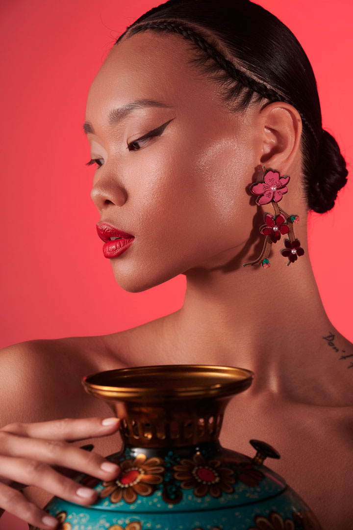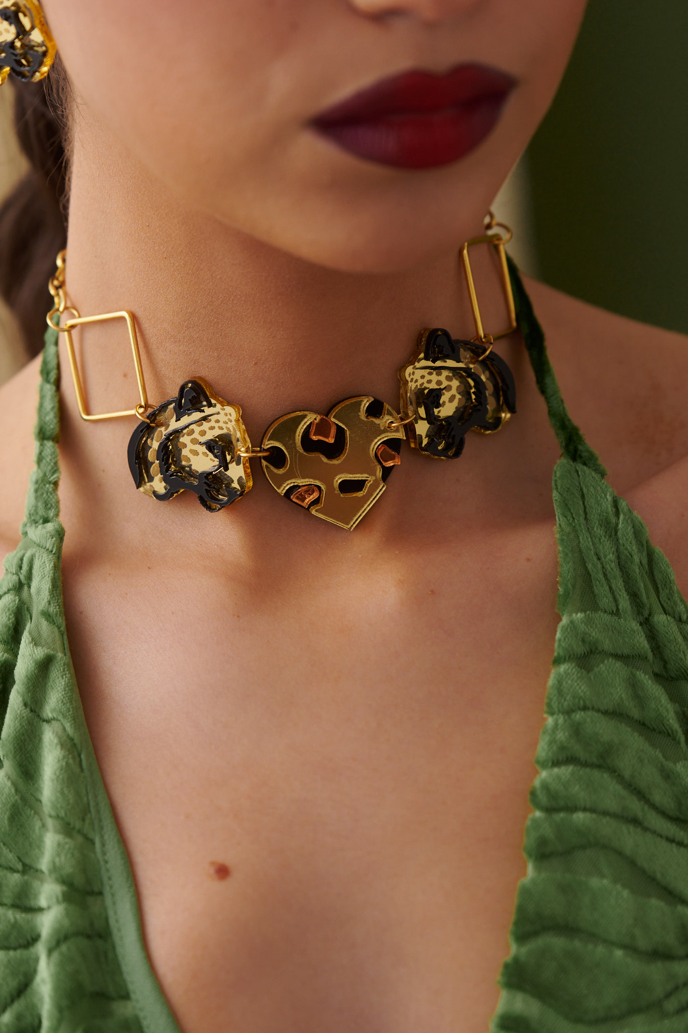 Πλεξιγκλάς είναι ο βασικός μας «καμβάς» — κομμένο με laser και δουλεμένο με το χέρι. Αλλά η συλλογή παίζει και με μεταλλικά στοιχεία, ημιπολύτιμους λίθους, ζιργκόν, ατσάλι και πέρλες. Για εμάς, κάθε υλικό είναι απλώς μια αφορμή για να πούμε μια ιστορία.