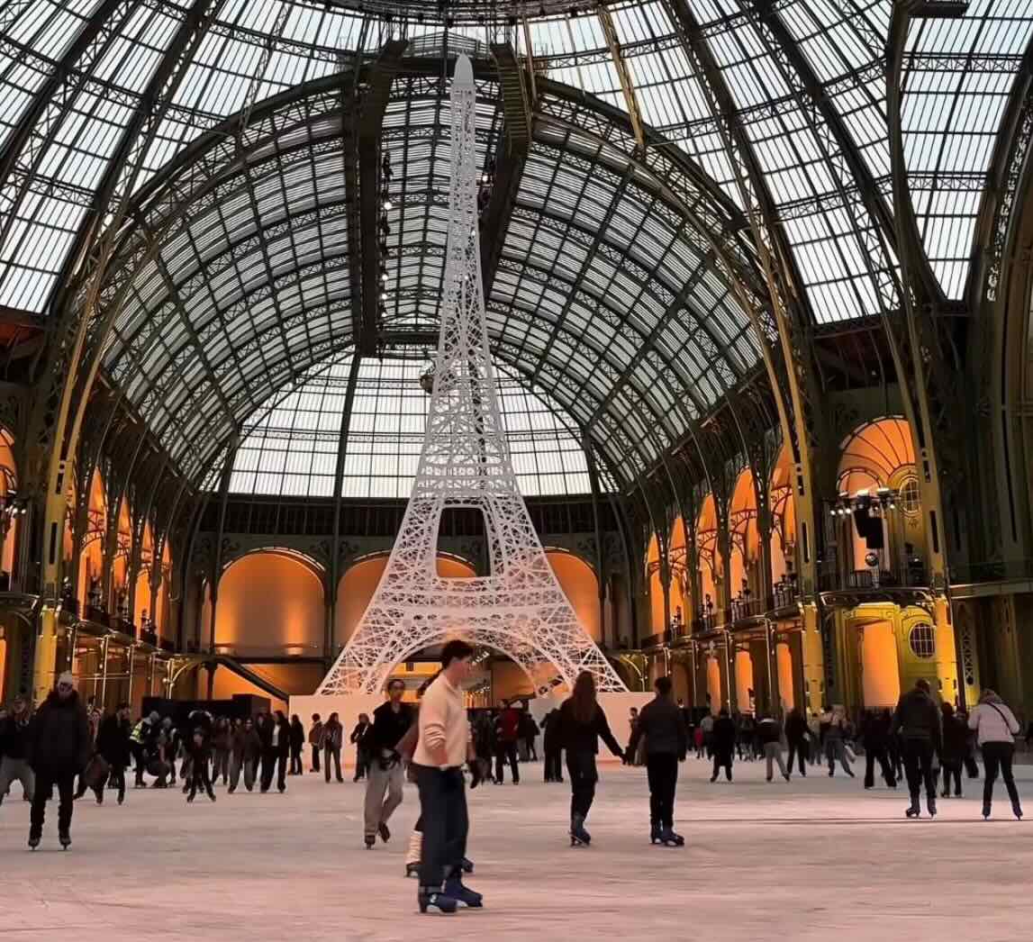 Στην καρδιά του Grand Palais, κάτω από τη θρυλική γυάλινη οροφή, απλώνεται μια πίστα πάγου 2.700 τετραγωνικών μέτρων, προσφέροντας μια μοναδική εμπειρία. Το φυσικό φως της ημέρας δημιουργεί μια σχεδόν κινηματογραφική ατμόσφαιρα, ενώ τις βραδινές ώρες ο χώρος μεταμορφώνεται με φωτισμούς και μουσική.