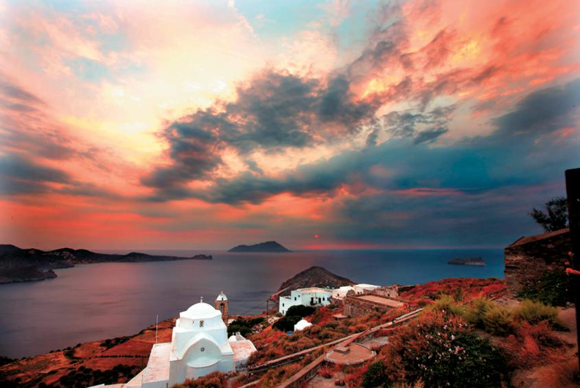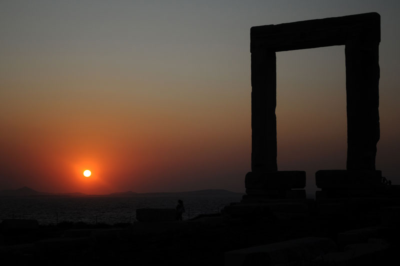 Παραμένοντας στο Αιγαίο, και συγκεκριμένα στις Κυκλάδες, ένα ακόμη μέρος με μαγευτικό ηλιοβασίλεμα είναι η Πορτάρα της Νάξου. Το λιλιπούτειο σκηνικό, με τα αρχαία λείψανα και τον παφλασμό της θάλασσας, σε συνδυασμό με το μεσογειακό ηλιοβασίλεμα θα ταξιδέψουν το νου σας χιλιόμετρα μακριά. Την ίδια χαλάρωση θα βιώσετε αν αποχαιρετήσετε τον ήλιο και από την Απάνω Μεριά της Σύρου. Από την περιοχή Σύριγγας, σε υψόμετρο 400 μέτρων, θα εξασφαλίσετε μία εντυπωσιακή πανοραμική θέα στις βόρειες παρθένες παραλίες του νησιού και στη νήσο Γυάρο. Ένα ακόμη μέρος για να απολαύσετε το ηλιοβασίλεμα στη Σύρο, μακριά από την πολυκοσμία, είναι το ρομαντικό Δελφίνι. Τέλος, και πριν αποχαιρετήσουμε τις Κυκλάδες, δεν γίνεται να μην αναφέρουμε το ηλιοβασίλεμα από την Πλάκα της Μήλου, που ίσως αποτελεί την καλύτερη επιλογή για ένα ζευγάρι.