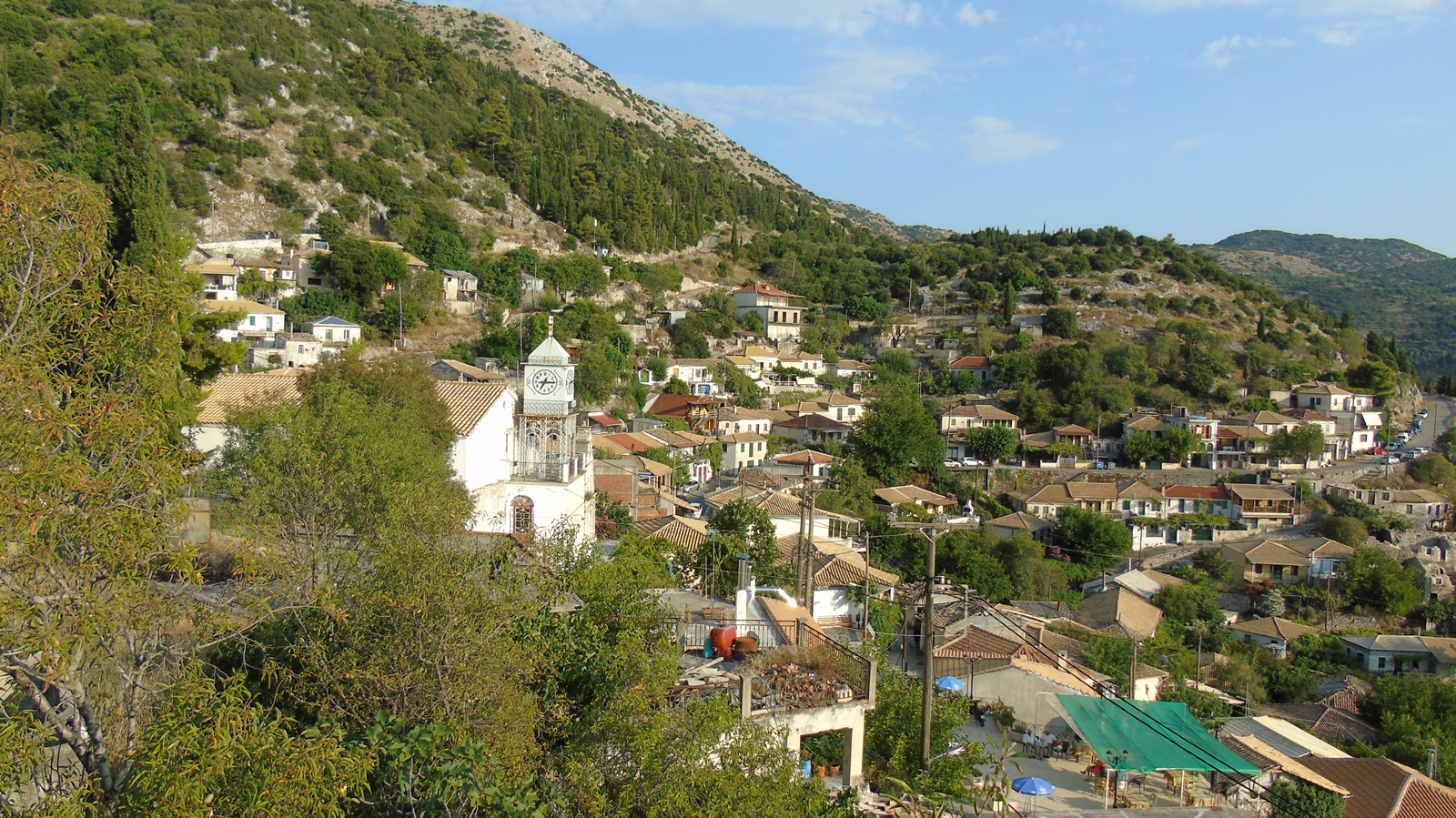 Στεφανωμένο με πράσινο και κτισμένο αμφιθεατρικά στο βουνό, το χωριό της Εξάνθειας έχει απεριόριστη θέα στο γαλάζιο του Ιονίου και στα ζεστά μεσογειακά ηλιοβασιλέματα, ενώ προσφέρει την αυθεντική ηρεμία της υπαίθρου, σε συνδυασμό την ειλικρινή ανθρώπινη επικοινωνία. Λίγο πιο δίπλα από το λιλιπούτειο αυτό χωριό, με τα πέτρινα κεραμοσκεπή σπίτια και τις ιδιαίτερες εκκλησιές, βρίσκεται “κρεμασμένο” στην άκρη του γκρεμού, το καφέ – μεζεδοπωλείο “Η Ράχη”, που τα τελευταία χρόνια έχει γίνει ένα από τα πιο in στέκια του νησιού.